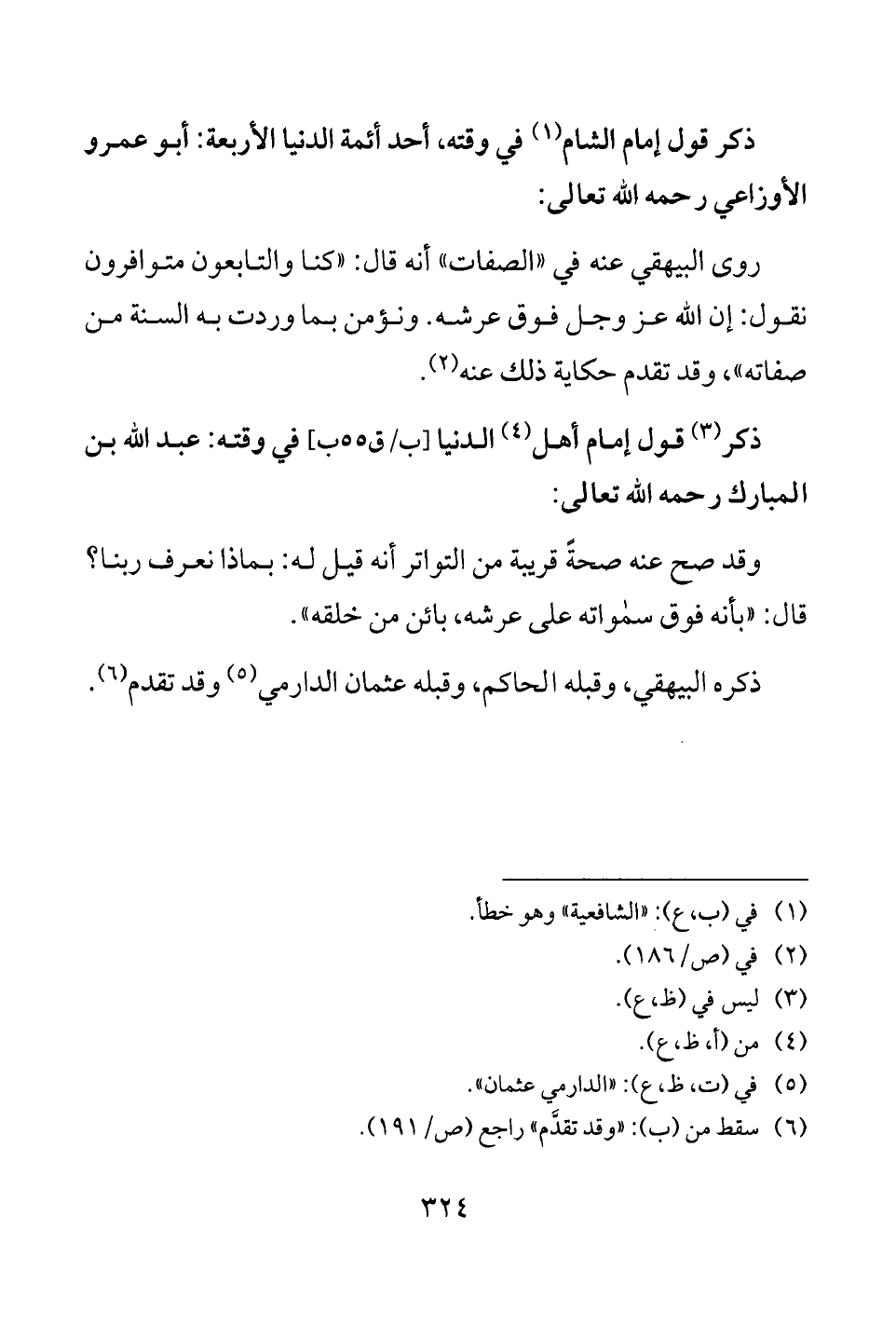 روى البيهقي عنه في "الصفات" أنه قال: "كنا والتابعون متوافرون نقول: إن الله عز وجل فوق عرشه. ونؤمن بما وردت به السنة من صفاته"، وقد تقدم حكاية ذلك عنه (¬2).