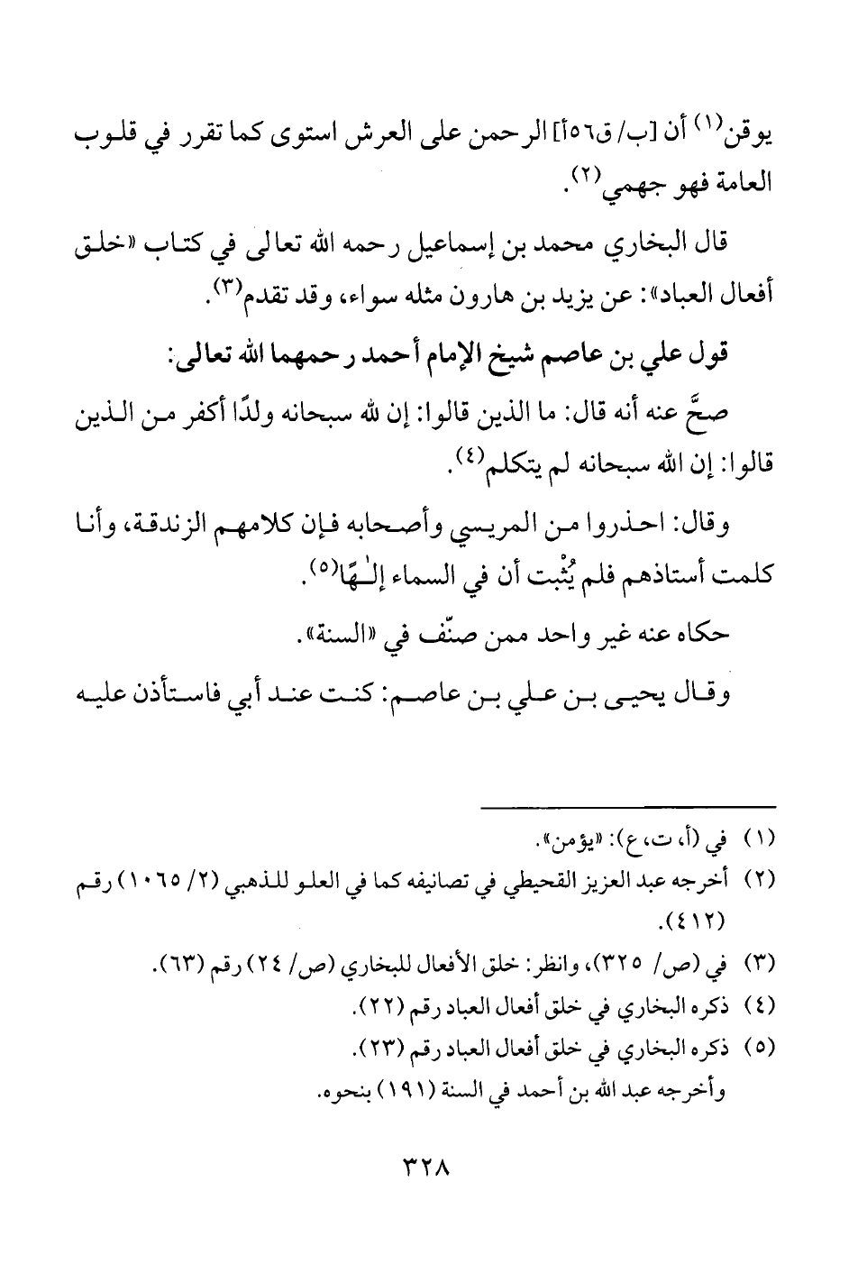 (¬3) في (ص/ 325)، وانظر: خلق الأفعال للبخاري (ص/ 24) رقم (63).