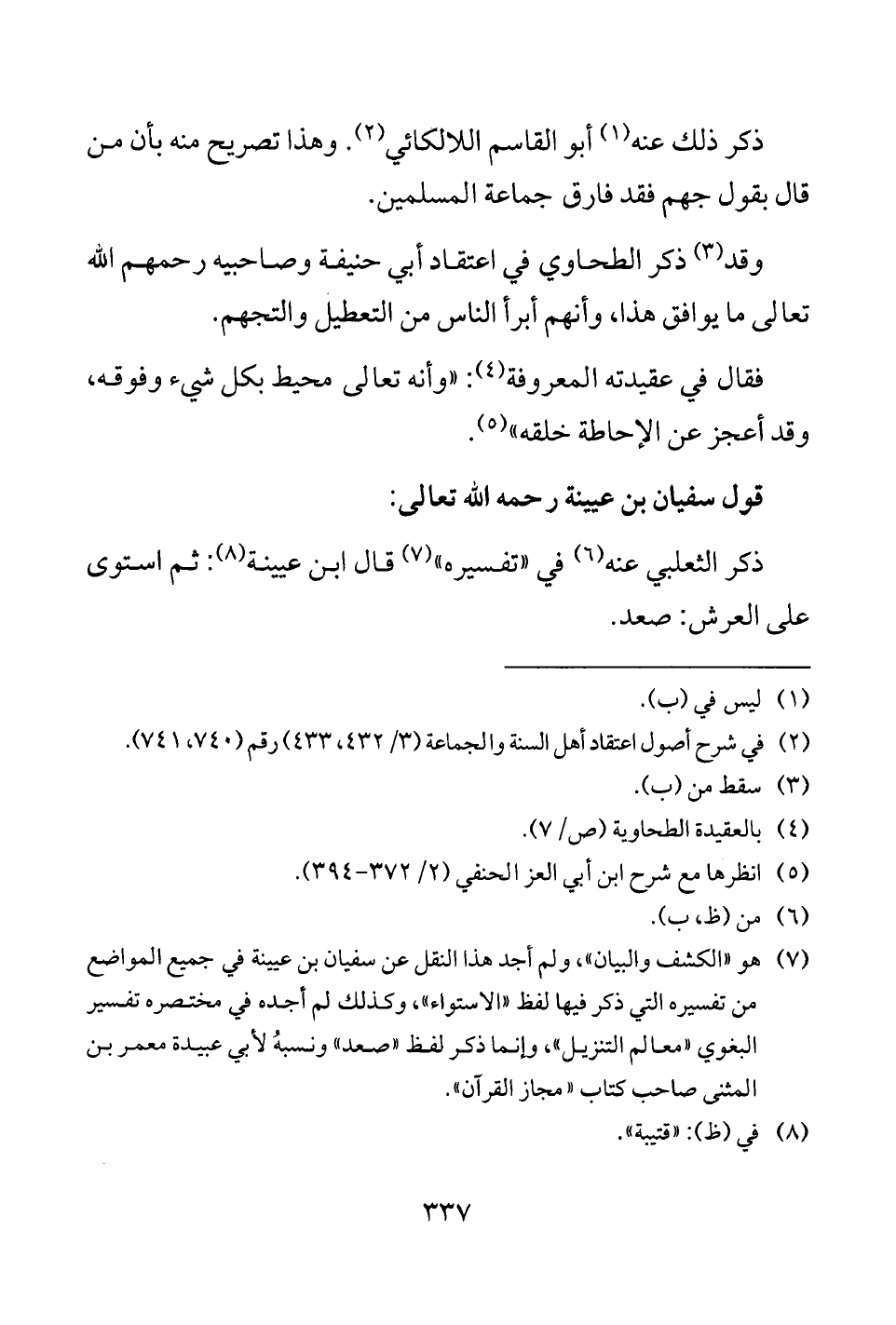 (¬7) هو "الكشف والبيان"، ولم أجد هذا النقل عن سفيان بن عيينة في جميع المواضع من تفسيره التي ذكر فيها لفظ "الاستواء"، وكذلك لم أجده في مختصره تفسير البغوي "معالم التنزيل"، وإنما ذكر لفظ "صعد" ونسبهُ لأبي عبيدة معمر بن المثنى صاحب كتاب "مجاز القرآن".