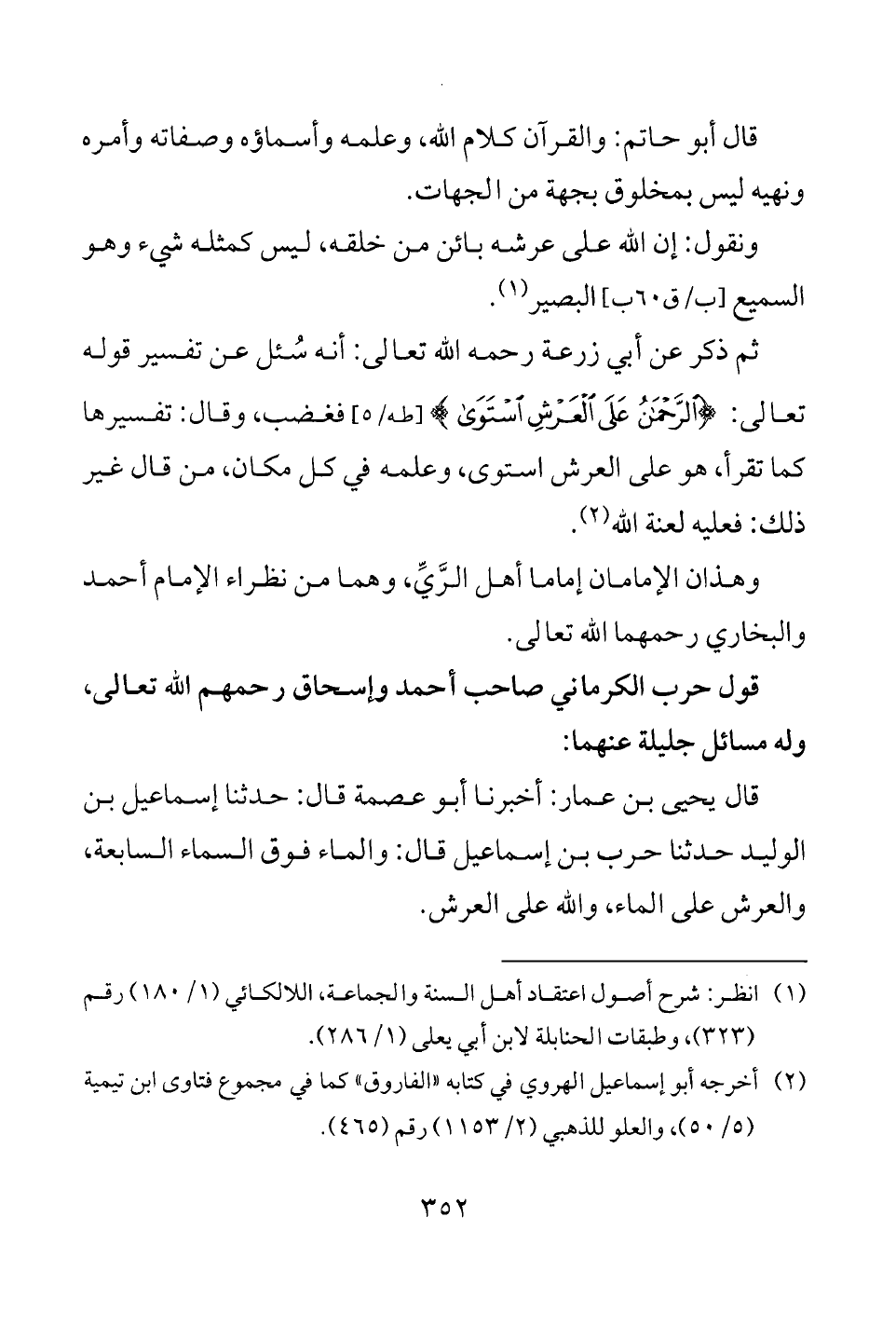 (¬1) انظر: شرح أصول اعتقاد أهل السنة والجماعة، اللالكائي (1/ 180) رقم (323)، وطبقات الحنابلة لابن أبي يعلى (1/ 286).