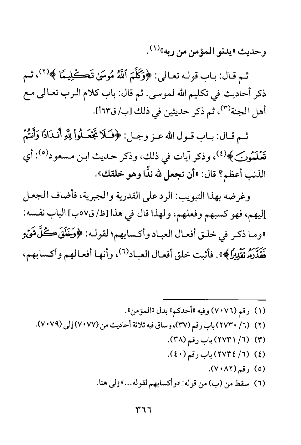 (¬2) (6/ 2730) باب رقم (37)، وساق فيه ثلاثة أحاديث من (7077) إلى (7079).