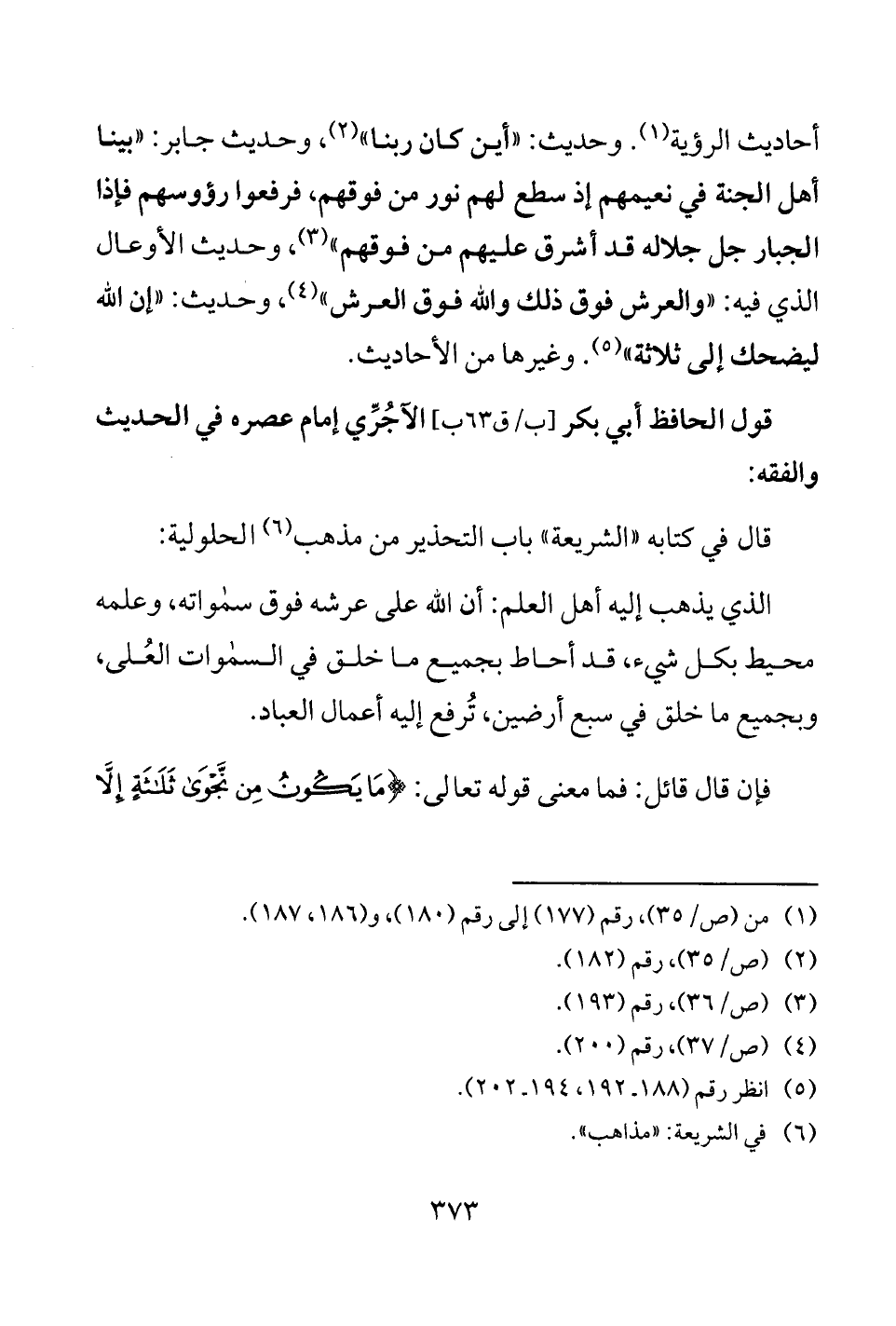 قول الحافظ أبي بكر [ب/ ق 63 ب] الآجُرِّي إمام عصره في الحديث والفقه:
