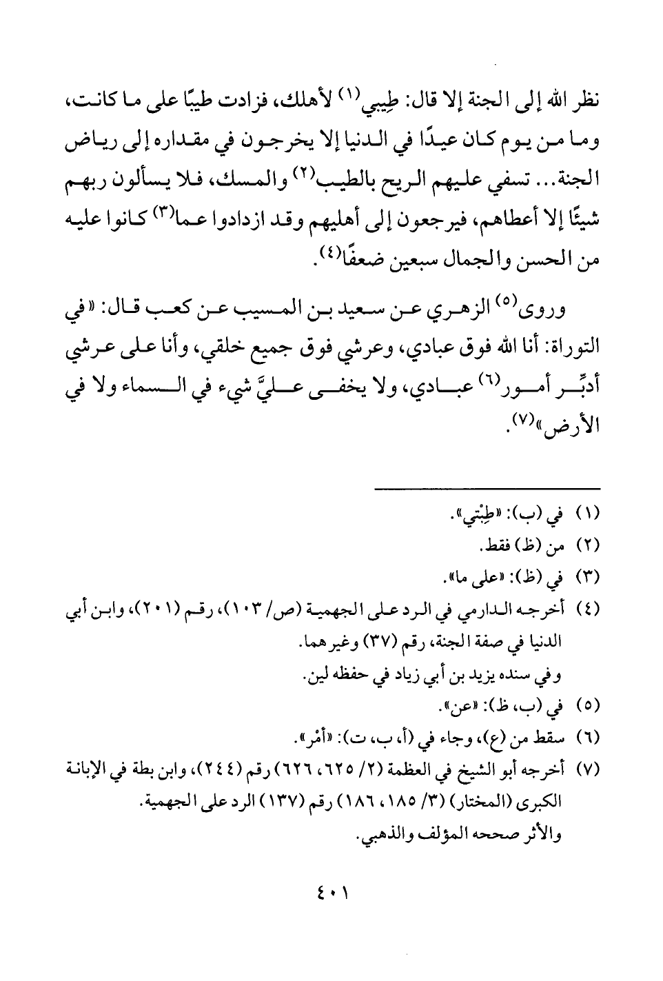 (¬4) أخرجه الدارمي في الرد على الجهمية (ص/ 103)، رقم (201)، وابن أبي الدنيا في صفة الجنة، رقم (37) وغيرهما.