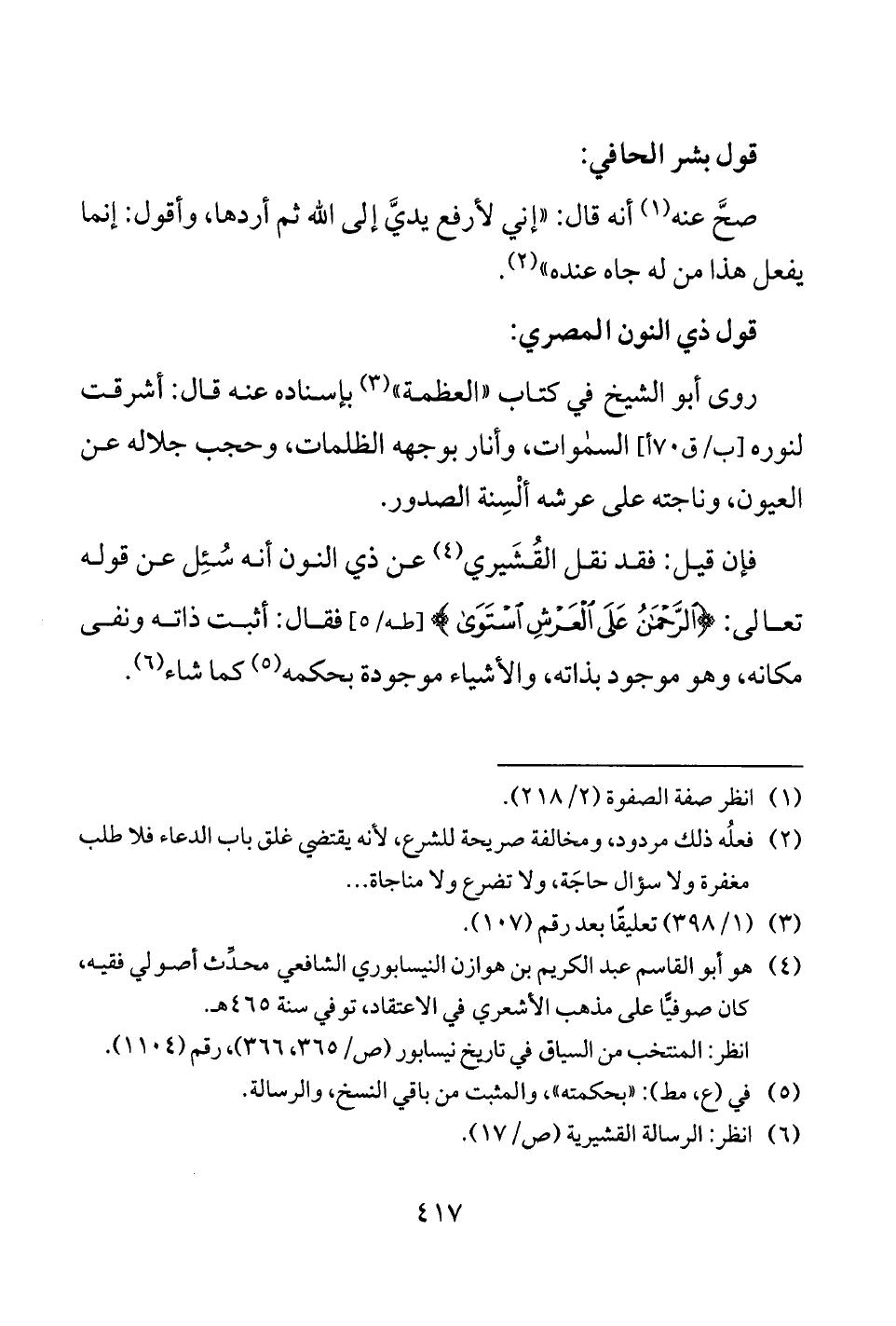 (¬4) هو أبو القاسم عبد الكريم بن هوازن النيسابوري الشافعي محدِّث أصولي فقيه، كان صوفيًّا على مذهب الأشعري في الاعتقاد، توفي سنة 465 هـ.
