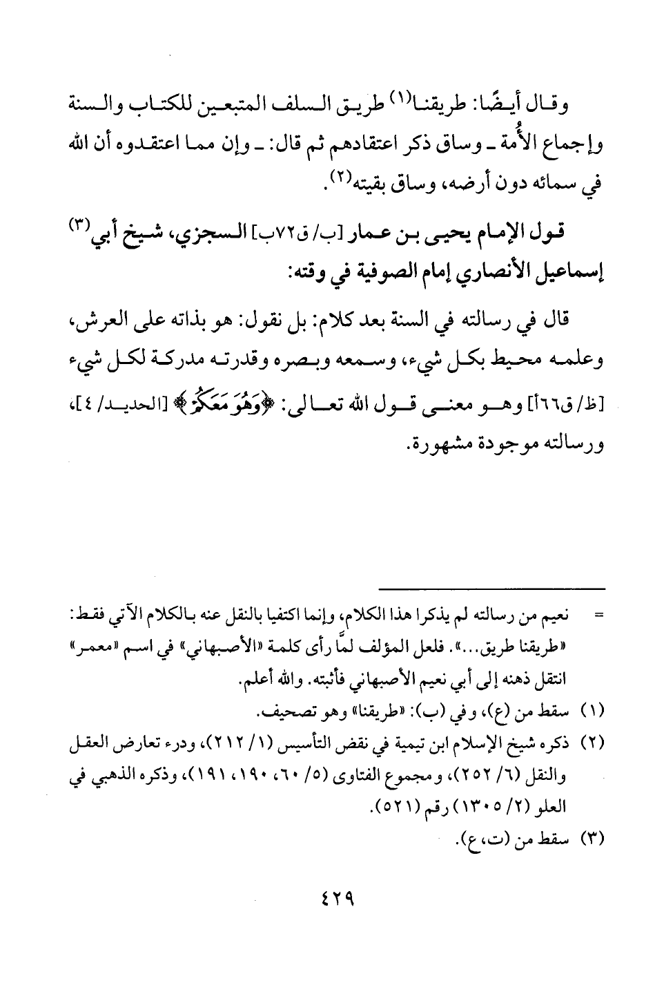 (¬2) ذكره شيخ الإسلام ابن تيمية في نقض التأسيس (1/ 212)، ودرء تعارض العقل والنقل (6/ 252)، ومجموع الفتاوى (5/ 60، 190، 191)، وذكره الذهبي في العلو (2/ 1305) رقم (521).