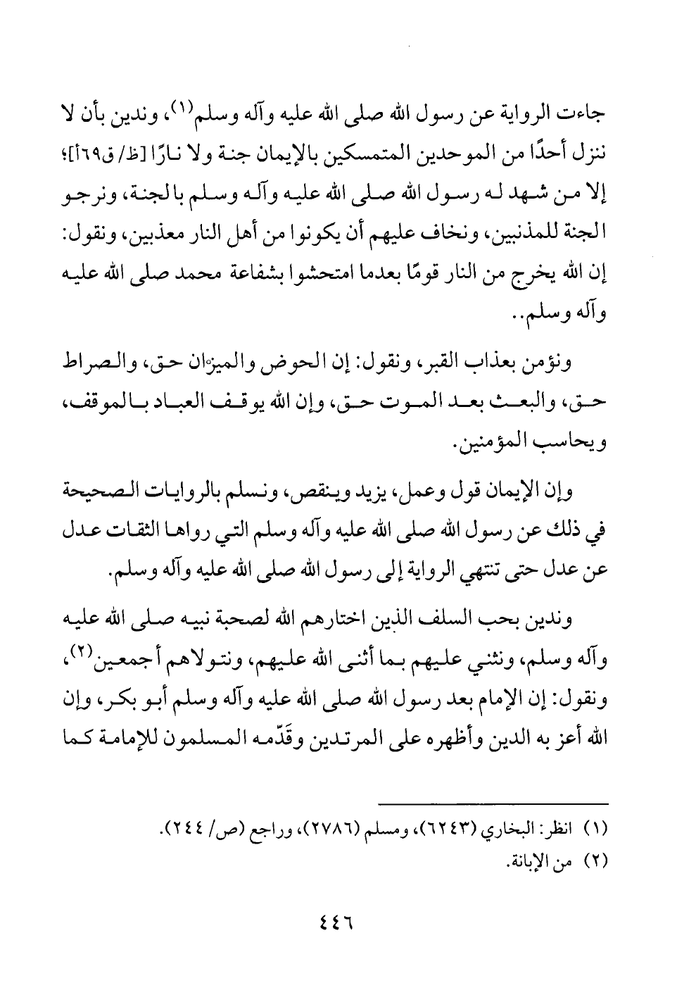 وإن الإيمان قول وعمل، يزيد وينقص، ونسلم بالروايات الصحيحة في ذلك عن رسول الله صلى الله عليه وآله وسلم التي رواها الثقات عدل عن عدل حتى تنتهي الرواية إلى رسول الله صلى الله عليه وآله وسلم.