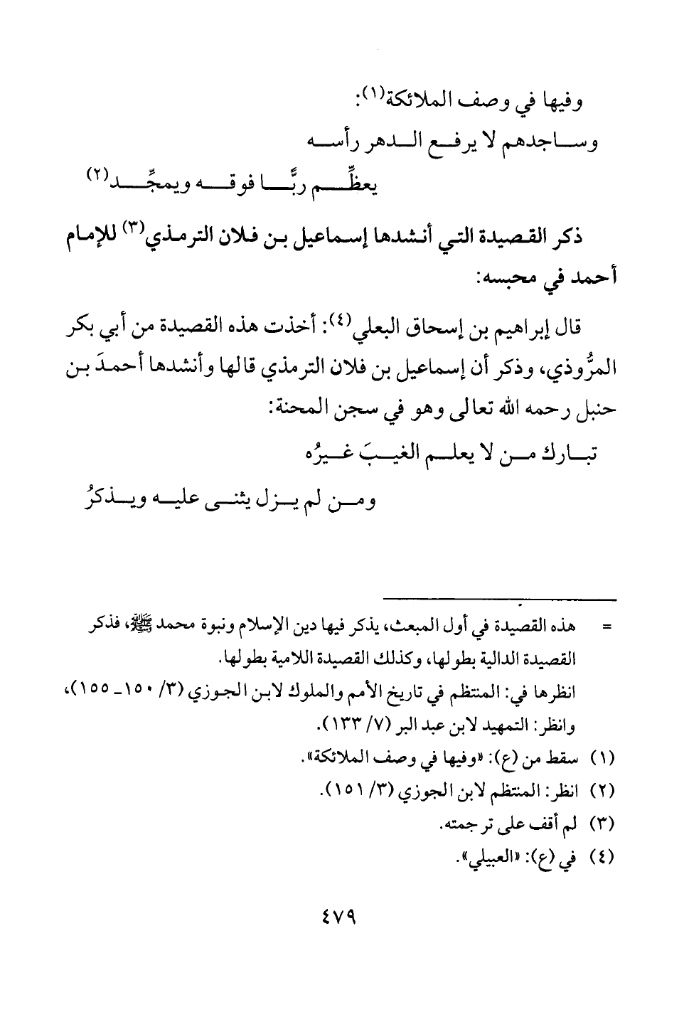قال إبراهيم بن إسحاق البعلي (¬4): أخذت هذه القصيدة من أبي بكر المرُّوذي، وذكر أن إسماعيل بن فلان الترمذي قالها وأنشدها أحمدَ بن حنبل رحمه الله تعالى وهو في سجن المحنة: