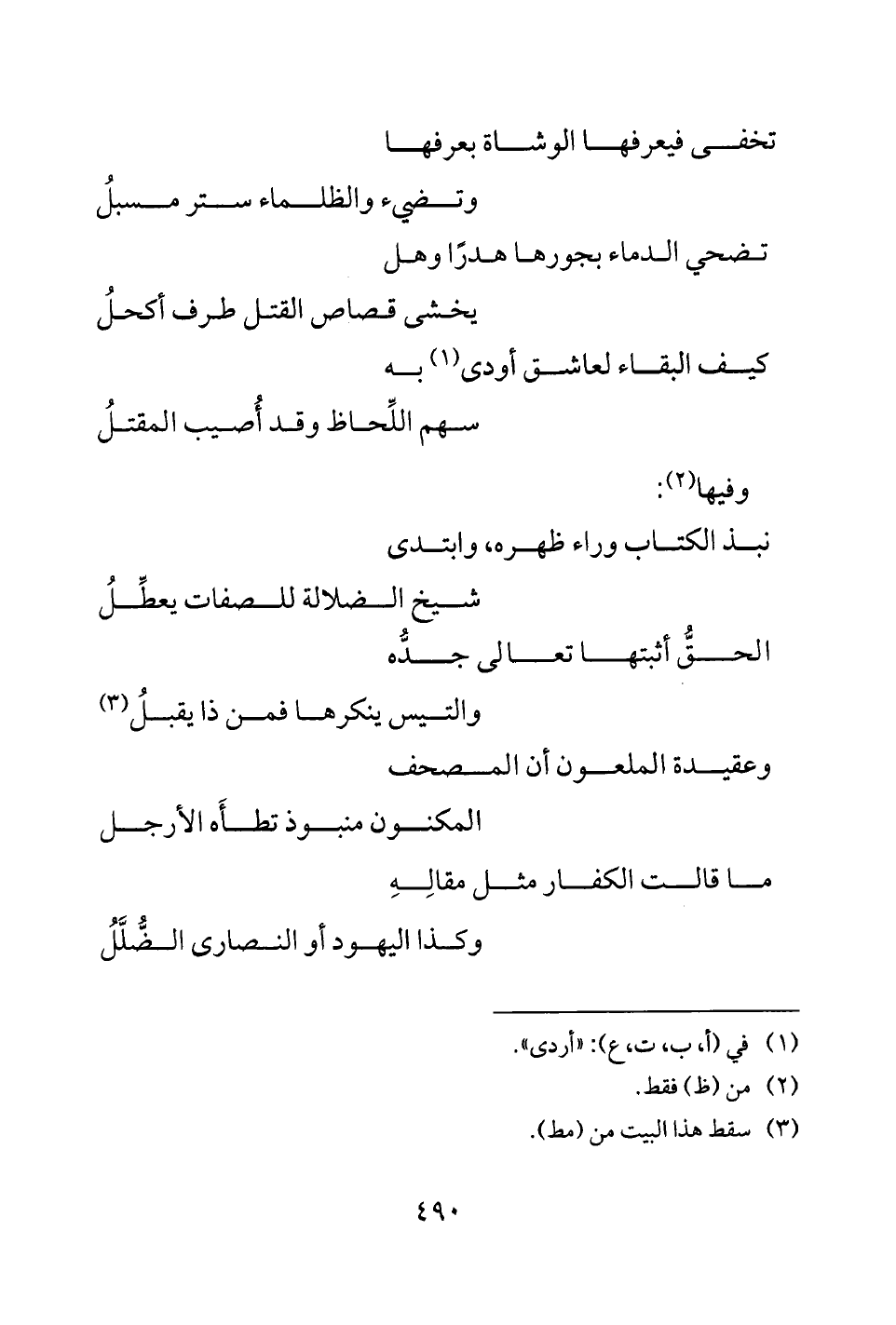 ما قالت الكفار مثل مقالِهِ ... وكذا اليهود أو النصارى الضُّلَّلُ