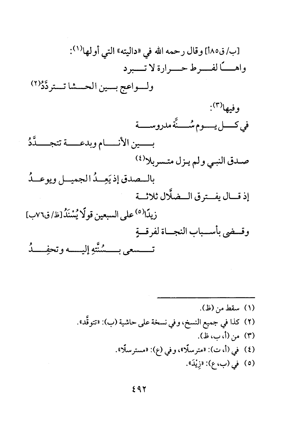 [ب/ ق 85 أ] وقال رحمه الله في "داليته" التي أولها (¬1):