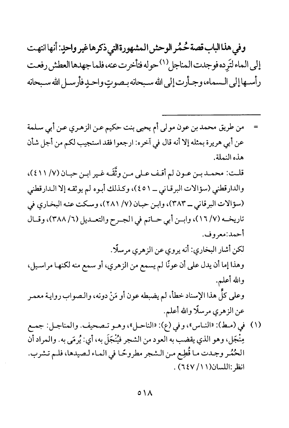 (¬1) في (مط): "الناس"، وفي (ع): "الناحل"، وهو تصحيف. والمناجل: جمع مِنْجَل، وهو الذي يقضب به العود من الشجر فيُنْجَلَ به، أي: يُرمَى به. والمراد أن الحُمُر وجدت ما قُطِع من الشجر مطروحًا في الماء لصيدها، فلم تشرب. انظر: اللسان (11/ 647).