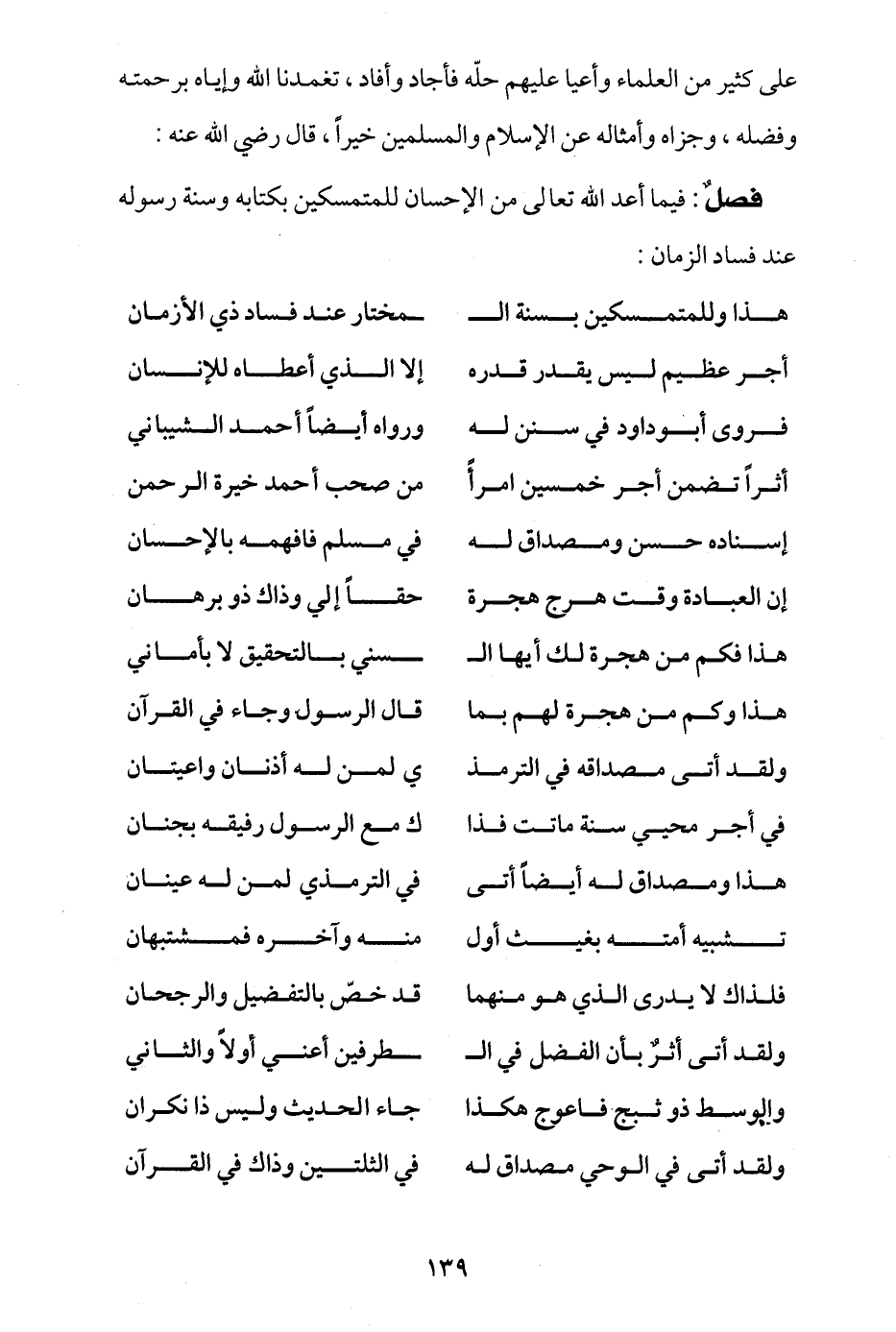 هذا وللمتمسكين بسنة الـ ... مُختار عند فساد ذي الأزمان