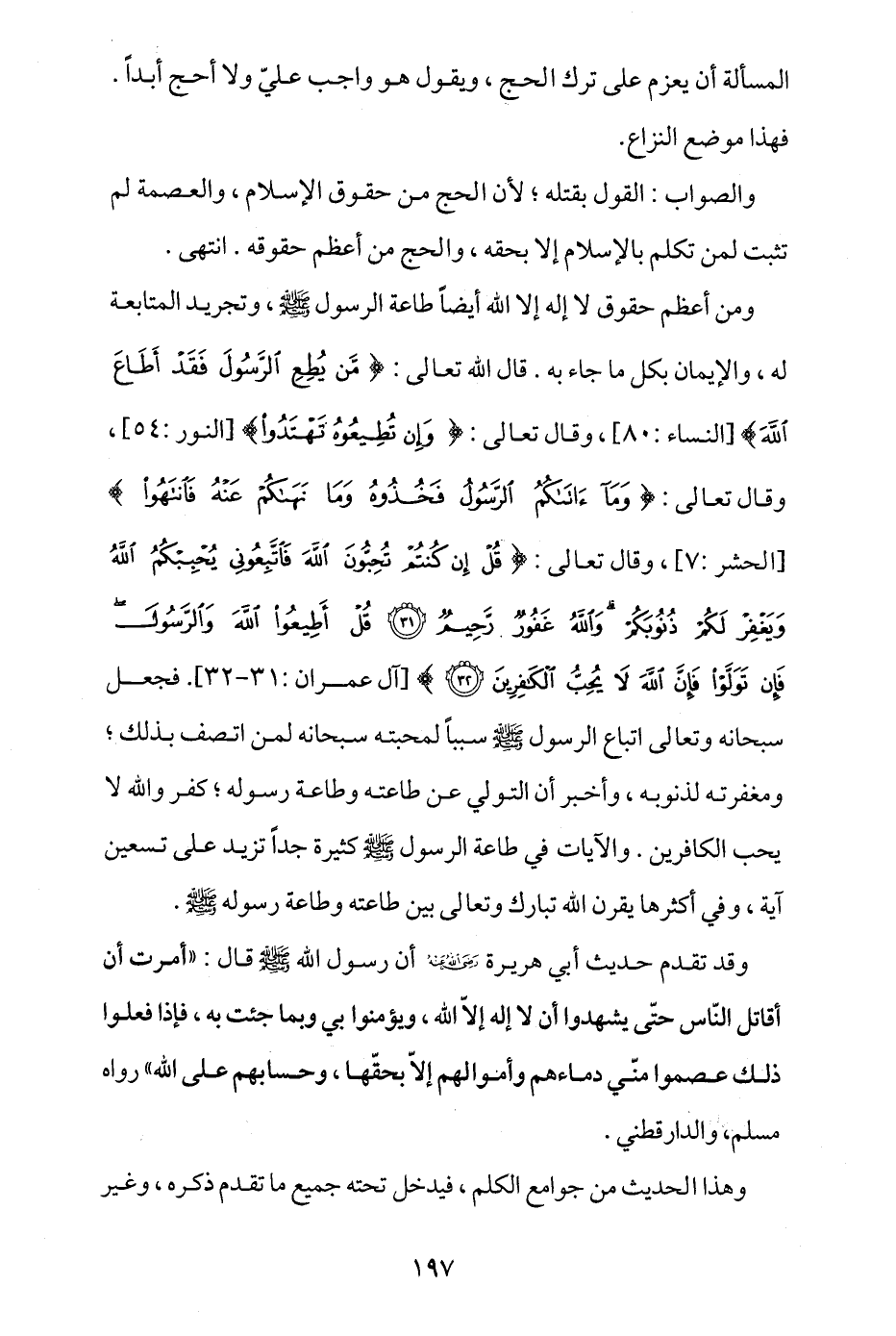 والصواب: القول بقتله؛ لأن الحج من حقوق الإسلام، والعصمة لم تثبت لمن تكلم بالإسلام إلا بحقه، والحج من أعظم حقوقه. انتهى.