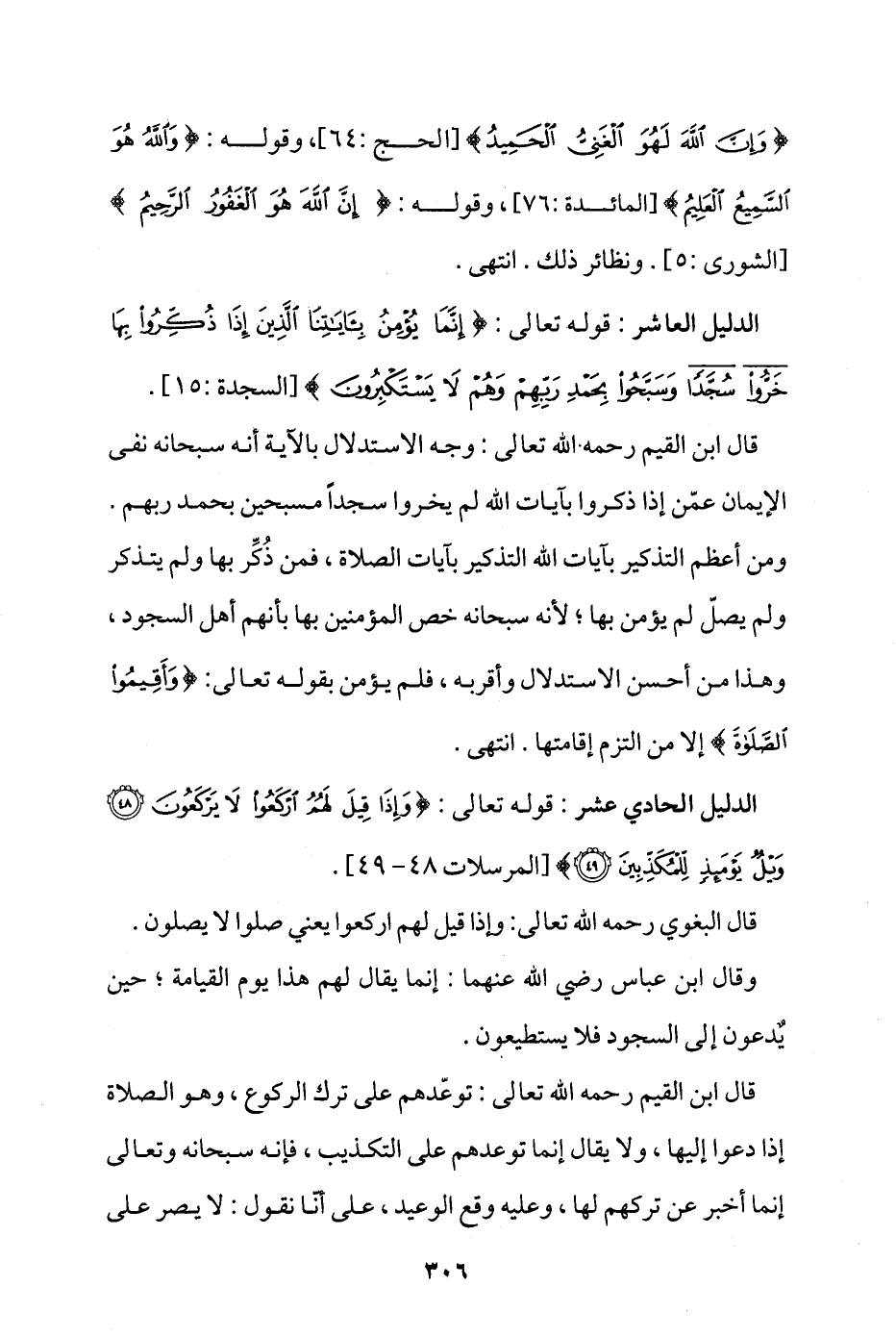 الدليل العاشر: قوله تعالى: {إِنَّمَا يُؤْمِنُ بِآَيَاتِنَا الَّذِينَ إِذَا ذُكِّرُوا بِهَا خَرُّوا سُجَّدًا وَسَبَّحُوا بِحَمْدِ رَبِّهِمْ وَهُمْ لَا يَسْتَكْبِرُونَ} [السجدة: 15].