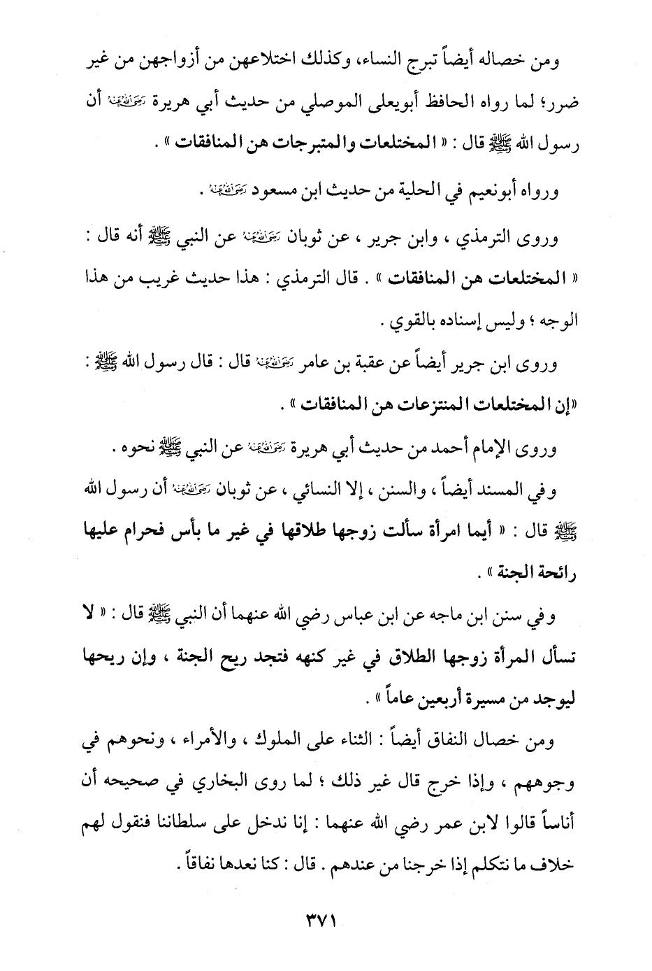 وروى الترمذي، وابن جرير، عن ثوبان - رضي الله عنه - عن النبي - صلى الله عليه وسلم - أنه قال: «المختلعات هن المنافقات» قال الترمذي: هذا حديث غريب من هذا الوجه، وليس إسناده بالقوي.