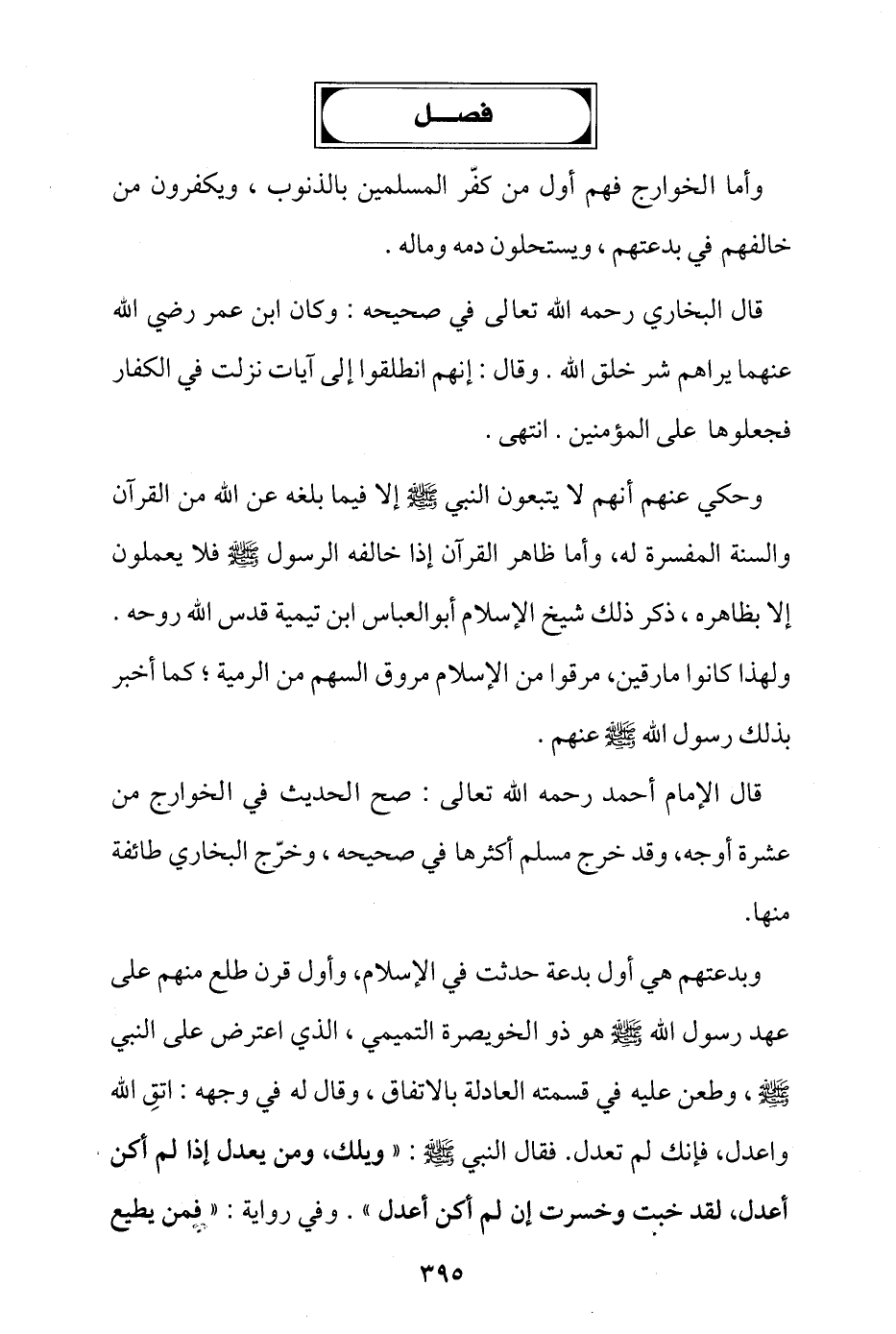 وحكي عنهم أنهم لا يتبعون النبي - صلى الله عليه وسلم - إلا فيما بلغه عن الله من القرآن والسنة المفسرة له، وأما ظاهر القرآن إذا خالفه الرسول - صلى الله عليه وسلم - فلا يعملون إلا بظاهره، ذكر ذلك شيخ الإسلام أبو العباس ابن تيمية قدس الله روحه، ولهذا كانوا مارقين، مرقوا من الإسلام مروق السهم من الرمية كما أخبر بذلك رسول الله - صلى الله عليه وسلم - عنهم.