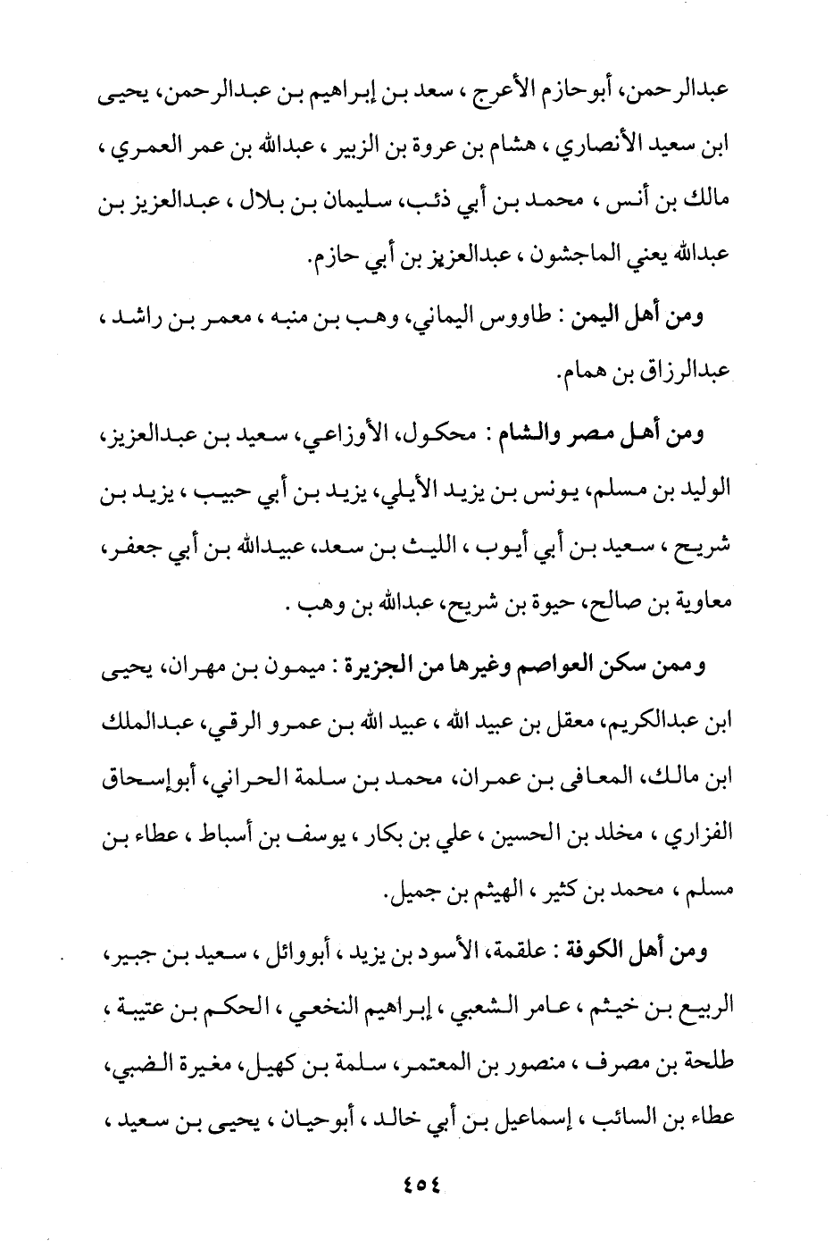 ومن أهل اليمن: طاووس اليماني، وهب بن منبه، معمر بن راشد، عبد الرزاق بن همام.