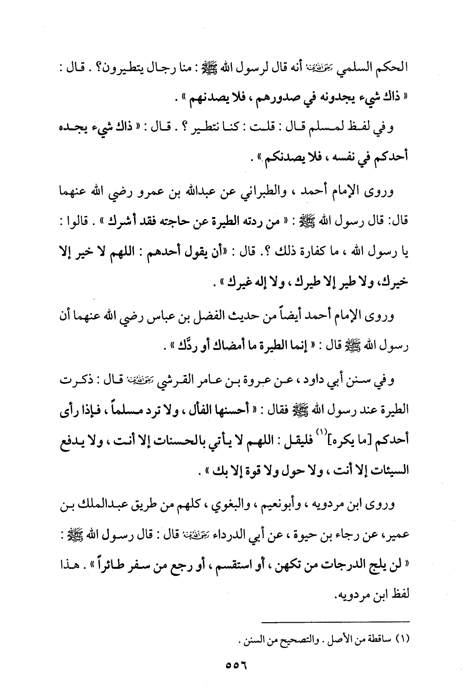 وروى الإمام أحمد أيضا من حديث الفضل بن عباس -رضي الله عنهما- أن رسول الله - صلى الله عليه وسلم - قال: «إنما الطيرة ما أمضاك أو ردّك».