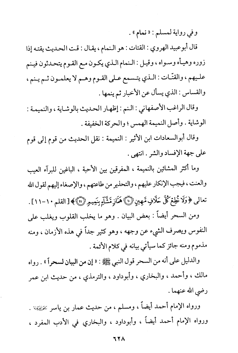 وما أكثر المشائين بالنميمة، المفرقين بين الأحبة، الباغين للبرآء العيب والعنت، فيجب الإنكار عليهم، والتحذير من طاعتهم والإصغاء إليهم؛ لقول الله تعالى: {وَلَا تُطِعْ كُلَّ حَلَّافٍ مَهِينٍ * هَمَّازٍ مَشَّاءٍ بِنَمِيمٍ} [القلم: 10 - 11].