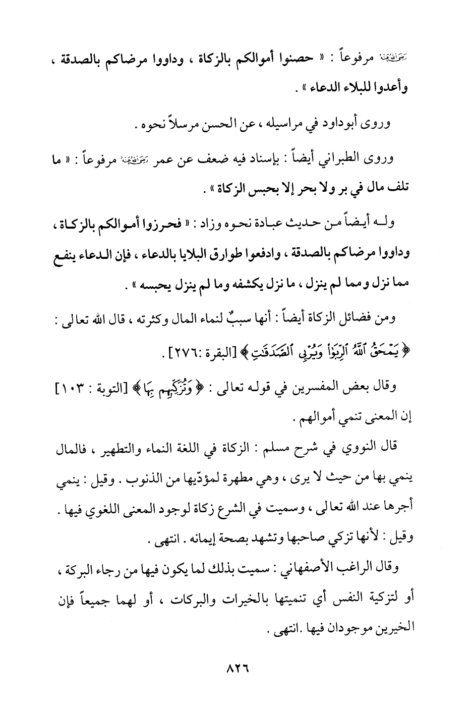 وقال بعض المفسرين في قوله تعالى: {وَتُزَكِّيهِمْ بِهَا} [التوبة: 103]: إن المعنى تنمي أموالهم.