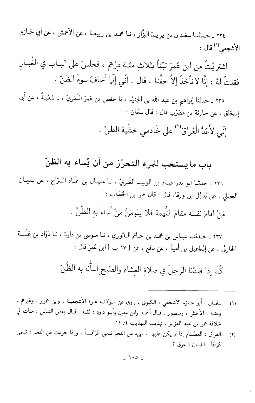 إِنِّي لَأَعُدُّ الْعُرَاقَ عَلَى خَادِمِي خَشْيَةَ الظَّنِّ