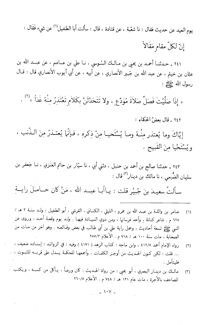 243 - حَدثنَا صَالح بن أَحْمد بن حَنْبَل دثني أبي نَا سيار بن حَاتِم الْعَنزي نَا جَعْفَر بن سُلَيْمَان الضبعِي نَا مَالك بن دِينَار قَالَ