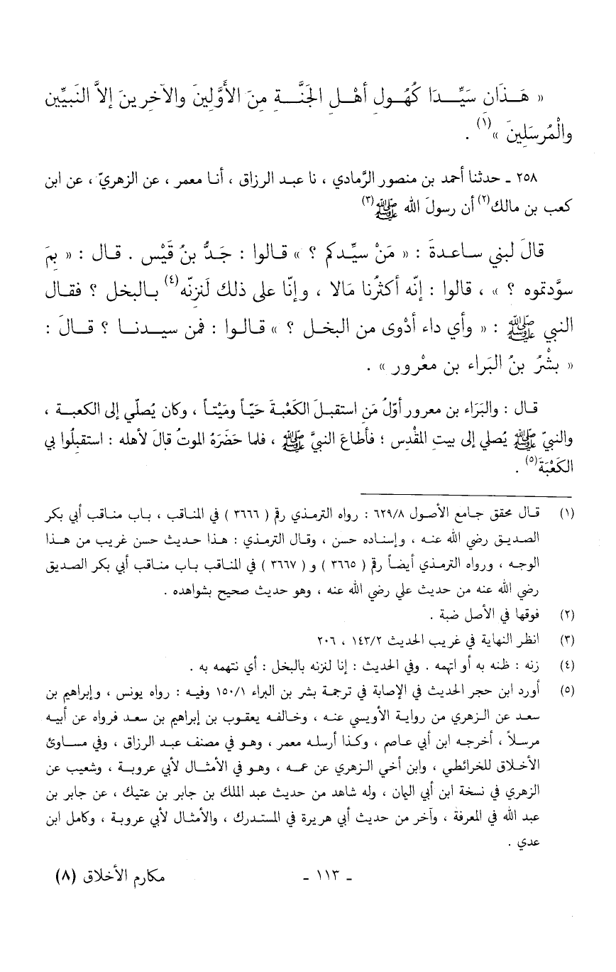 258 - حَدثنَا أَحْمد بن مَنْصُور الرَّمَادِي نَا عبد الرَّزَّاق أَنا مَعْمَرٌ عَنِ الزُّهْرِيِّ عَنِ ابْنِ كَعْبِ بْنِ مَالِكٍ أَنَّ رَسُولَ اللَّهِ صَلَّى اللَّهُ عَلَيْهِ وَسَلَّمَ