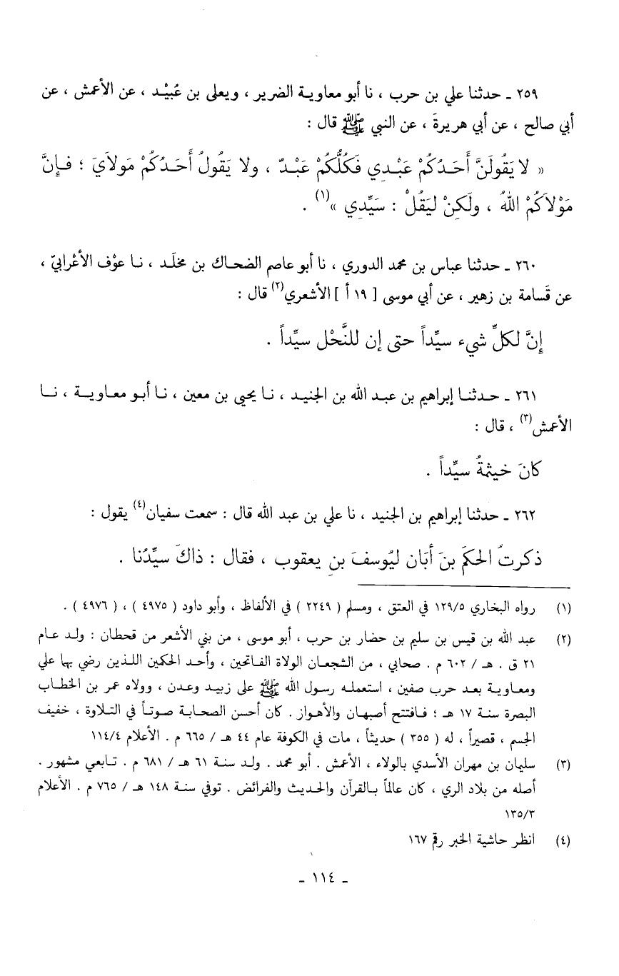 261 - حَدَّثَنَا إِبْرَاهِيمُ بْنُ عَبْدِ اللَّهِ بْنِ الْجُنَيْدِ نَا يحيى بن معِين نَا أَبُو مُعَاوِيَة نَا الْأَعْمَشُ قَالَ