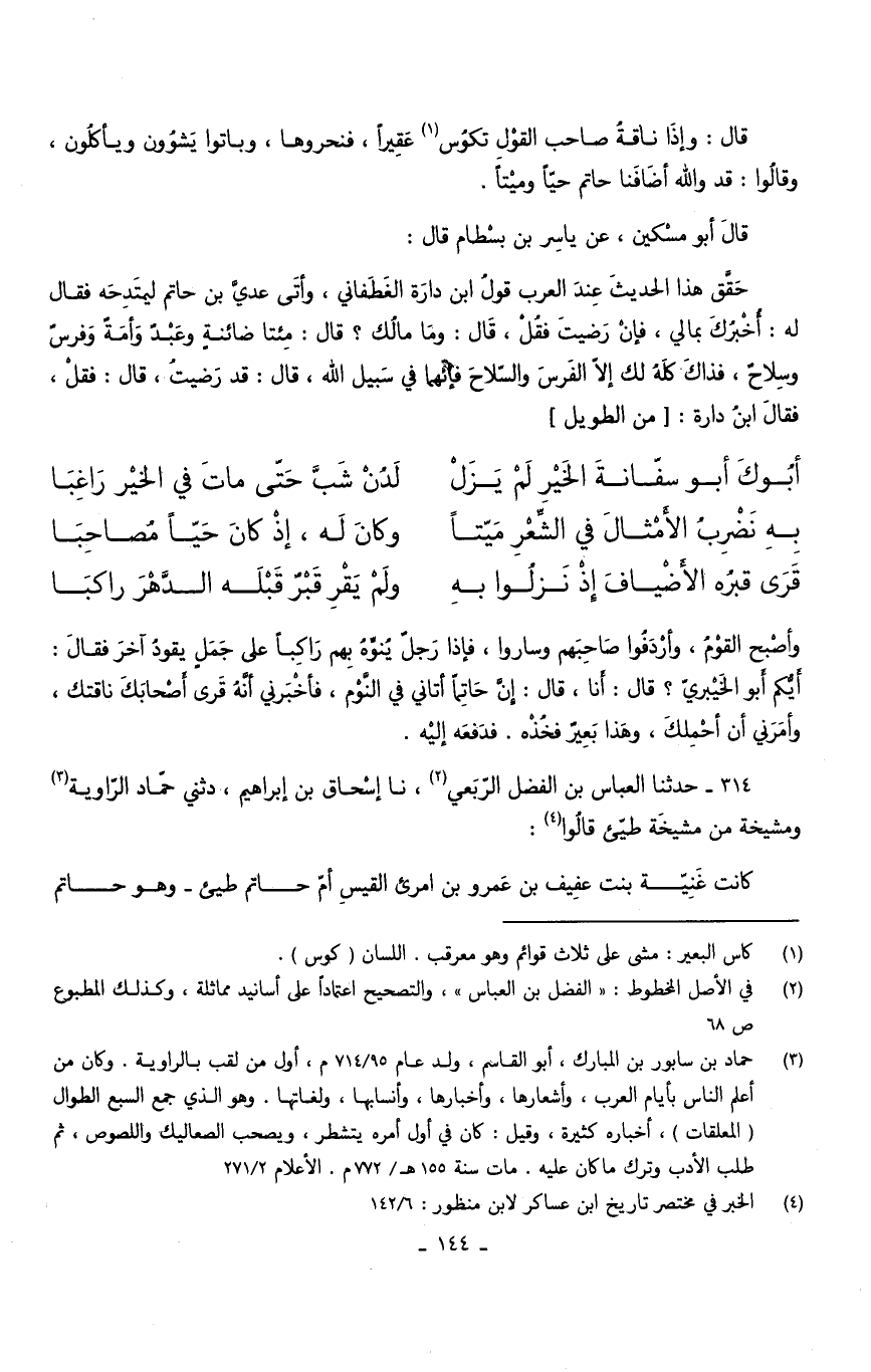 314 - حَدثنَا الْعَبَّاس بن الْفضل الربعِي نَا إِسْحَاق بن إِبْرَاهِيم دثني حَمَّادٌ الرَّاوِيَةُ وَمَشْيَخَةٌ مِنْ مَشْيَخَةِ طَيِّئٍ قَالُوا