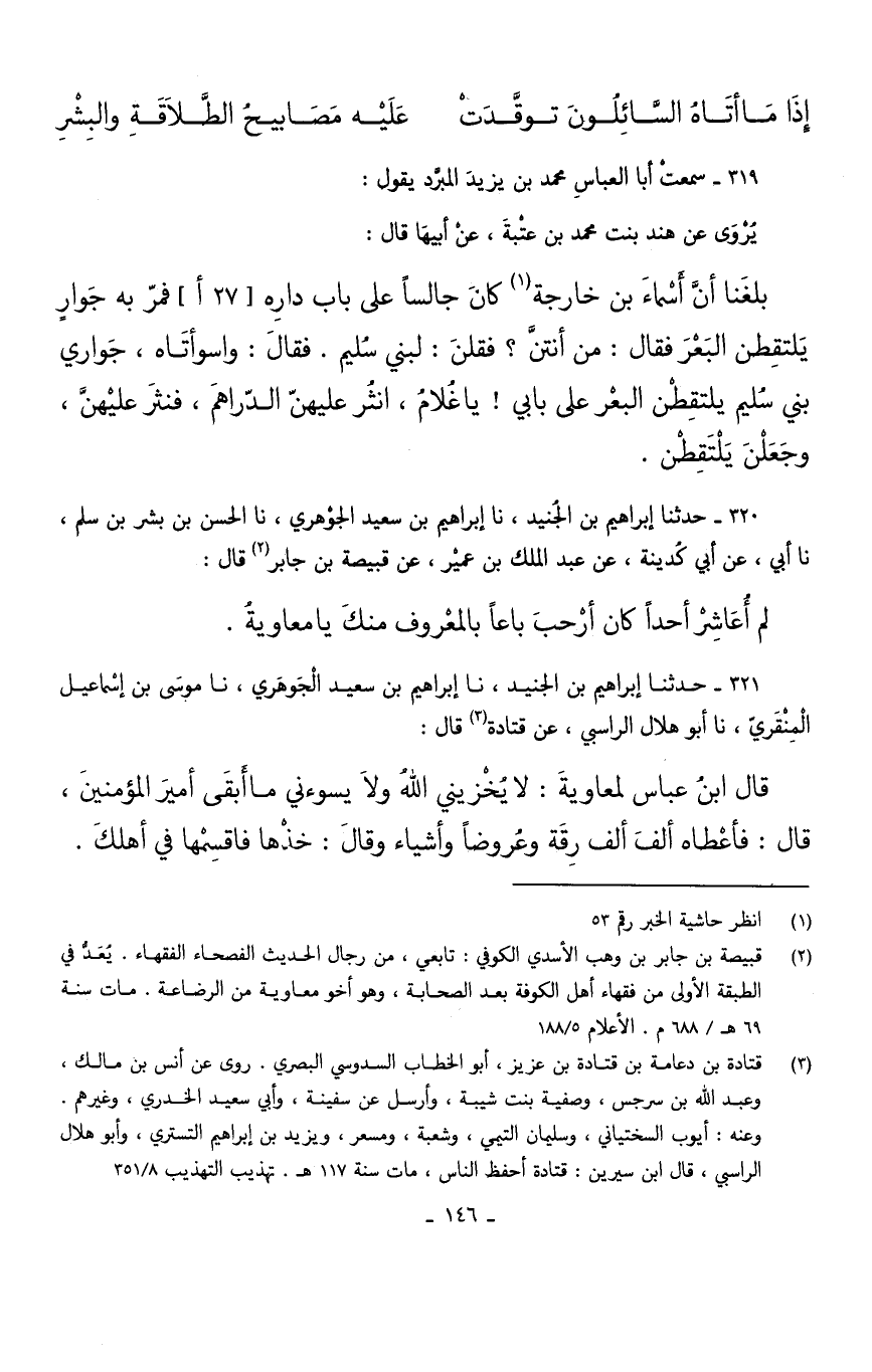 319 - سَمِعْتُ أَبَا الْعَبَّاسِ مُحَمَّدَ بْنَ يَزِيدَ الْمُبَرِّدَ يَقُولُ