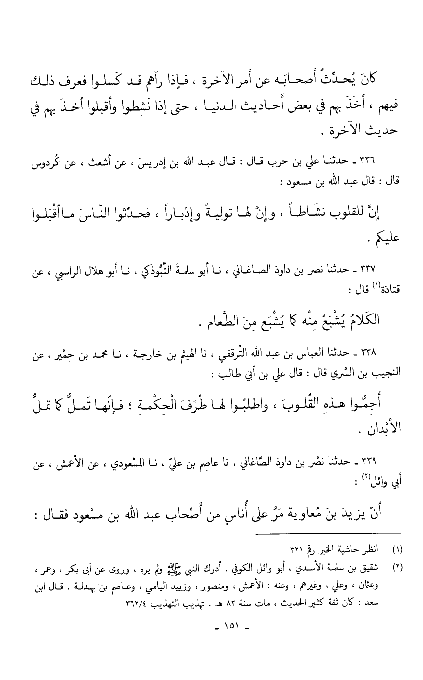 339 - حَدثنَا نصر بن دَاوُد الصَّاغَانِي نَا عَاصِم بن عَليّ نَا الْمَسْعُودِيُّ عَنِ الْأَعْمَشِ عَنْ أَبِي وَائِلٍ