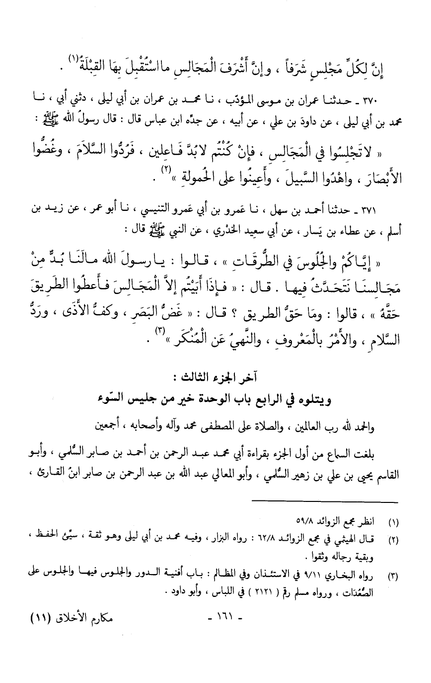 آخر الْجُزْء الثَّالِث ويتلوه فِي الرَّابِع بَاب الْوحدَة خير من جليس السوء