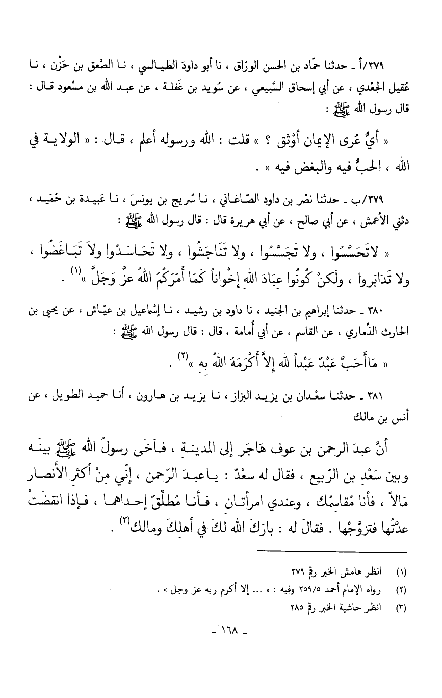 لَا تَحَسَّسُوا وَلَا تَجَسَّسُوا وَلَا تَنَاجَشُوا وَلَا تَحَاسَدُوا وَلَا تَبَاغَضُوا وَلَا تَدَابَرُوا وَلَكِنْ كُونُوا عِبَادَ اللَّهِ إِخْوَانًا كَمَا أَمَرَكُمُ اللَّهُ عز وَجل