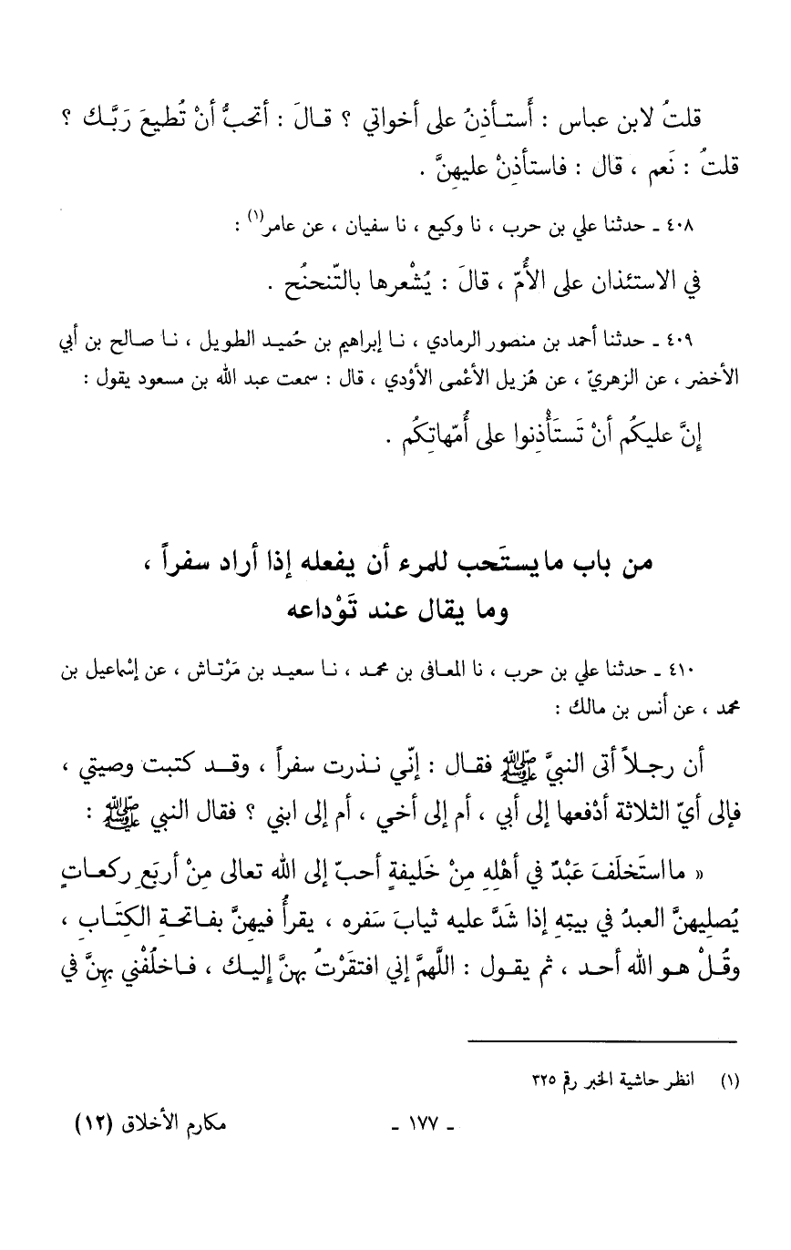 من بَابُ مَا يُسْتَحَبُّ لِلْمَرْءِ أَنْ يَفْعَلَهُ إِذَا أَرَادَ سفرا وَمَا يُقَال عِنْد توداعه