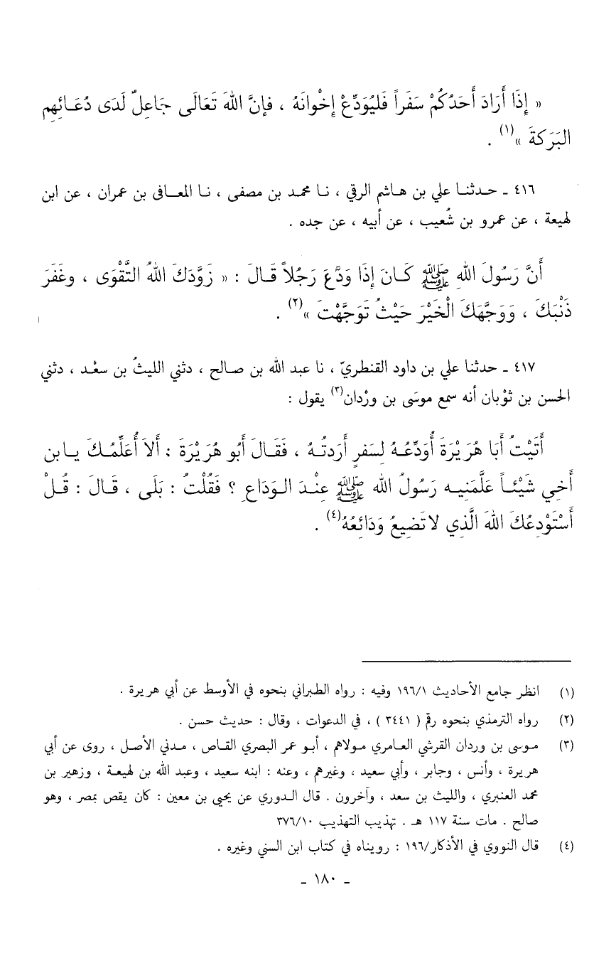 إِذَا أَرَادَ أَحَدُكُمْ سَفَرًا فَلْيُوَدِّعْ إِخْوَانَهُ فَإِنَّ اللَّهَ تَعَالَى جَاعِلٌ لَدَى دُعَائِهِمُ الْبَرَكَةَ