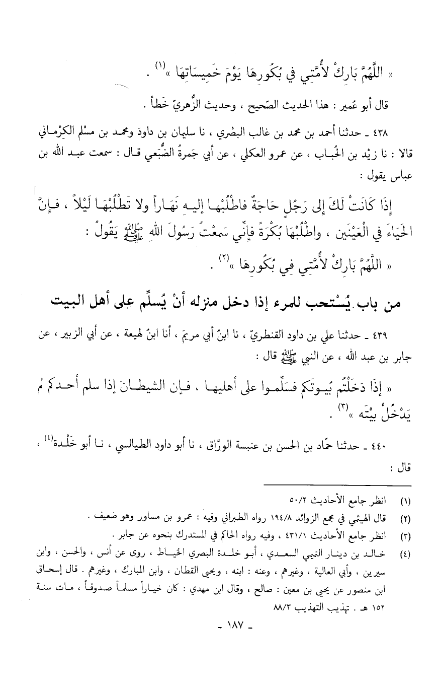 اللَّهُمَّ بَارِكْ لِأُمَّتِي فِي بُكُورِهَا
