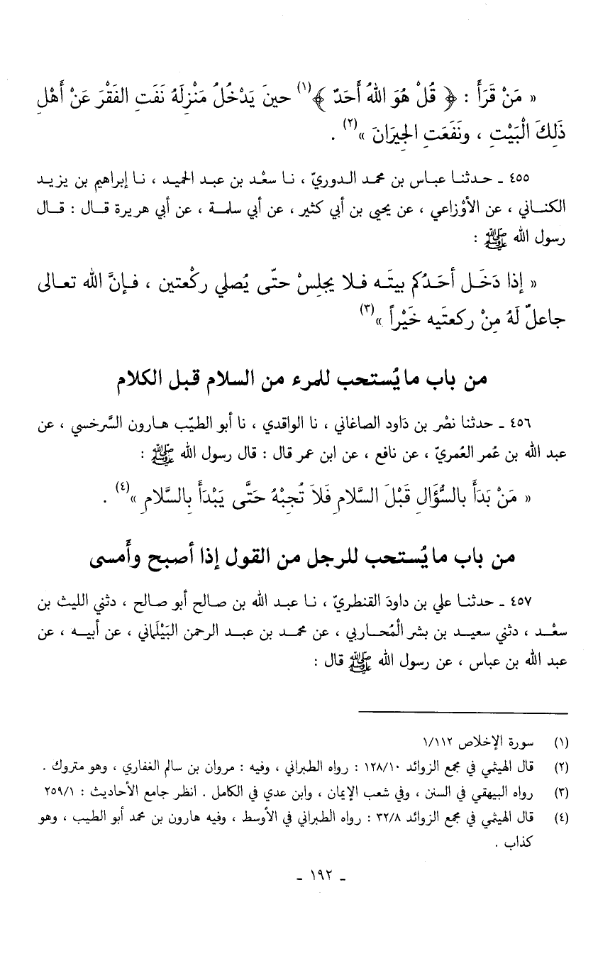 456 - حَدثنَا نصر بن دَاوُد الصَّاغَانِي نَا الْوَاقِدِيّ نَا أَبُو الطَّيِّبِ هَارُونُ السَّرَخْسِيُّ عَنْ عَبْدِ اللَّهِ بْنِ عُمَرَ الْعُمَرِيِّ عَنْ نَافِعٍ عَنِ ابْنِ عُمَرَ قَالَ قَالَ رَسُولُ اللَّهِ صَلَّى اللَّهُ عَلَيْهِ وَسَلَّمَ