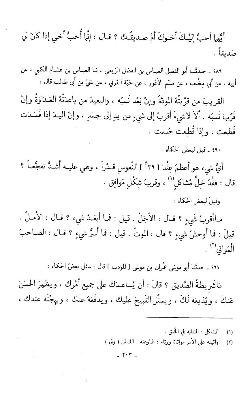 491 - حَدَّثَنَا أَبُو مُوسَى عِمْرَانُ بْنُ مُوسَى الْمُؤَدِّبُ قَالَ سُئِلَ بَعْضُ الْحُكَمَاءِ