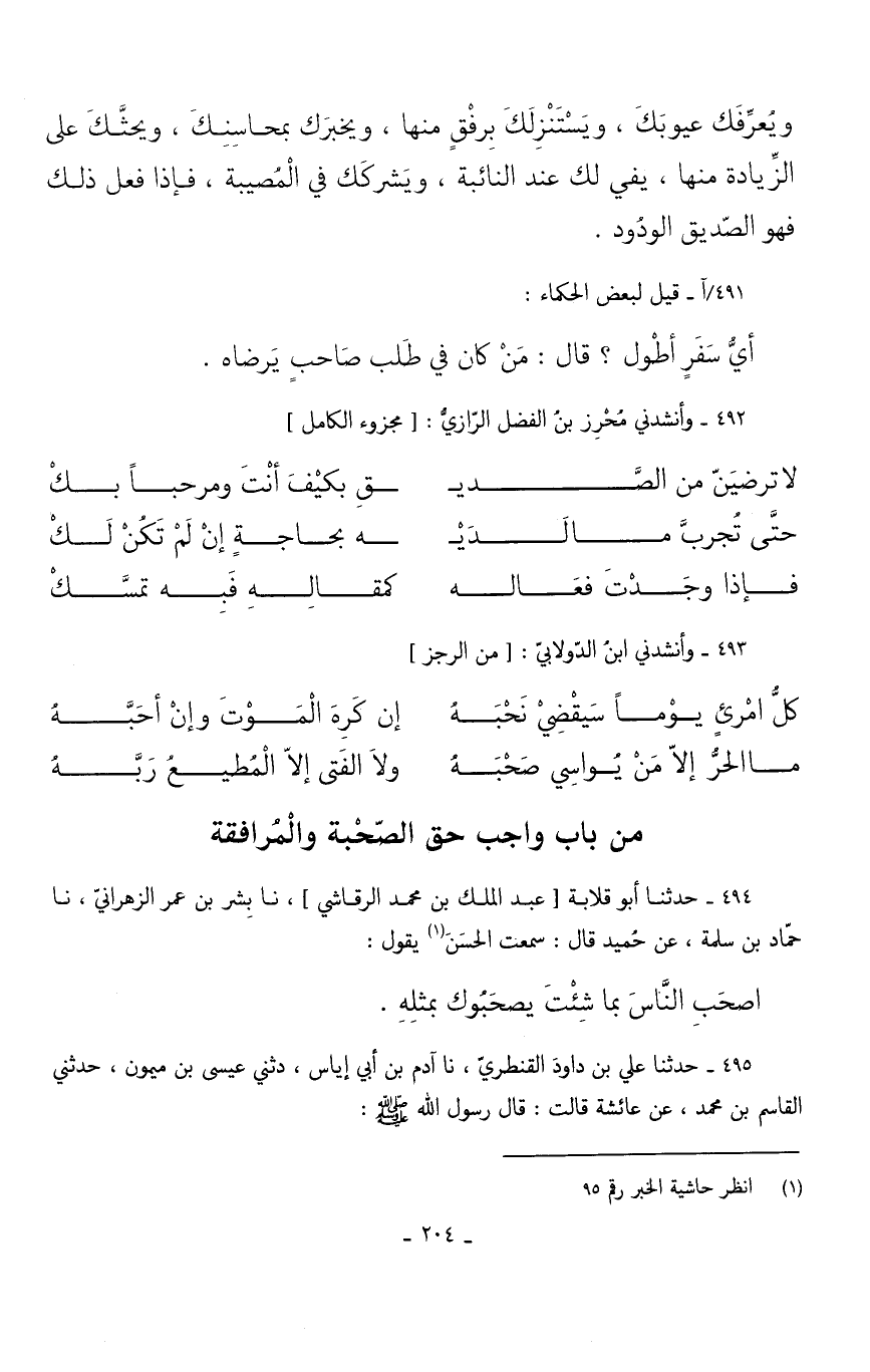 من بَابُ وَاجِبِ حَقِّ الصُّحْبَةِ وَالْمُرَافَقَةِ