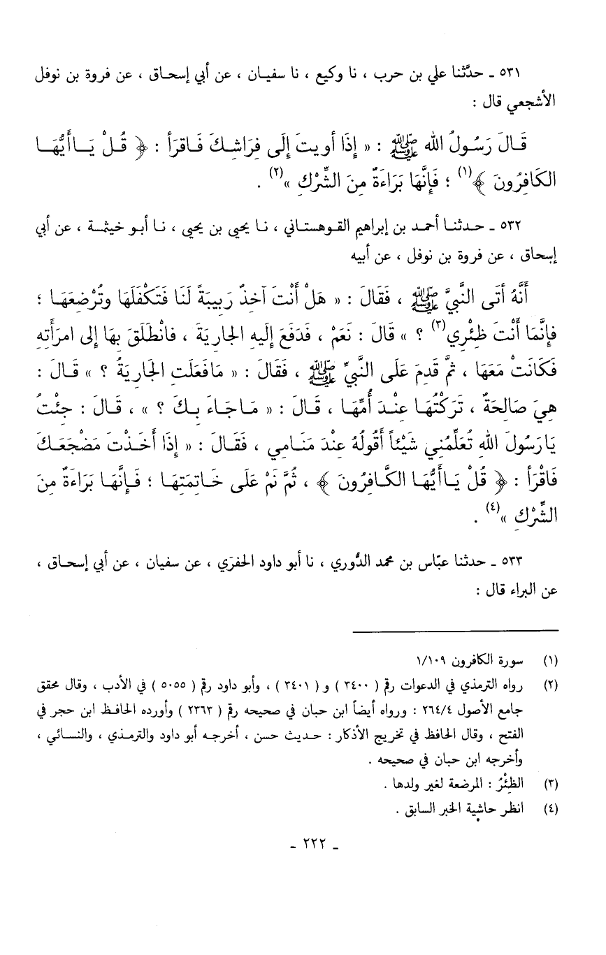 532 - حَدثنَا أَحْمد بن إِبْرَاهِيم القوهستاني نَا يحيى بن يحيى نَا أَبُو خَيْثَمَةَ عَنْ أَبِي إِسْحَاقَ عَنْ فَرْوَةَ بْنِ نَوْفَلٍ عَنْ أَبِيهِ
