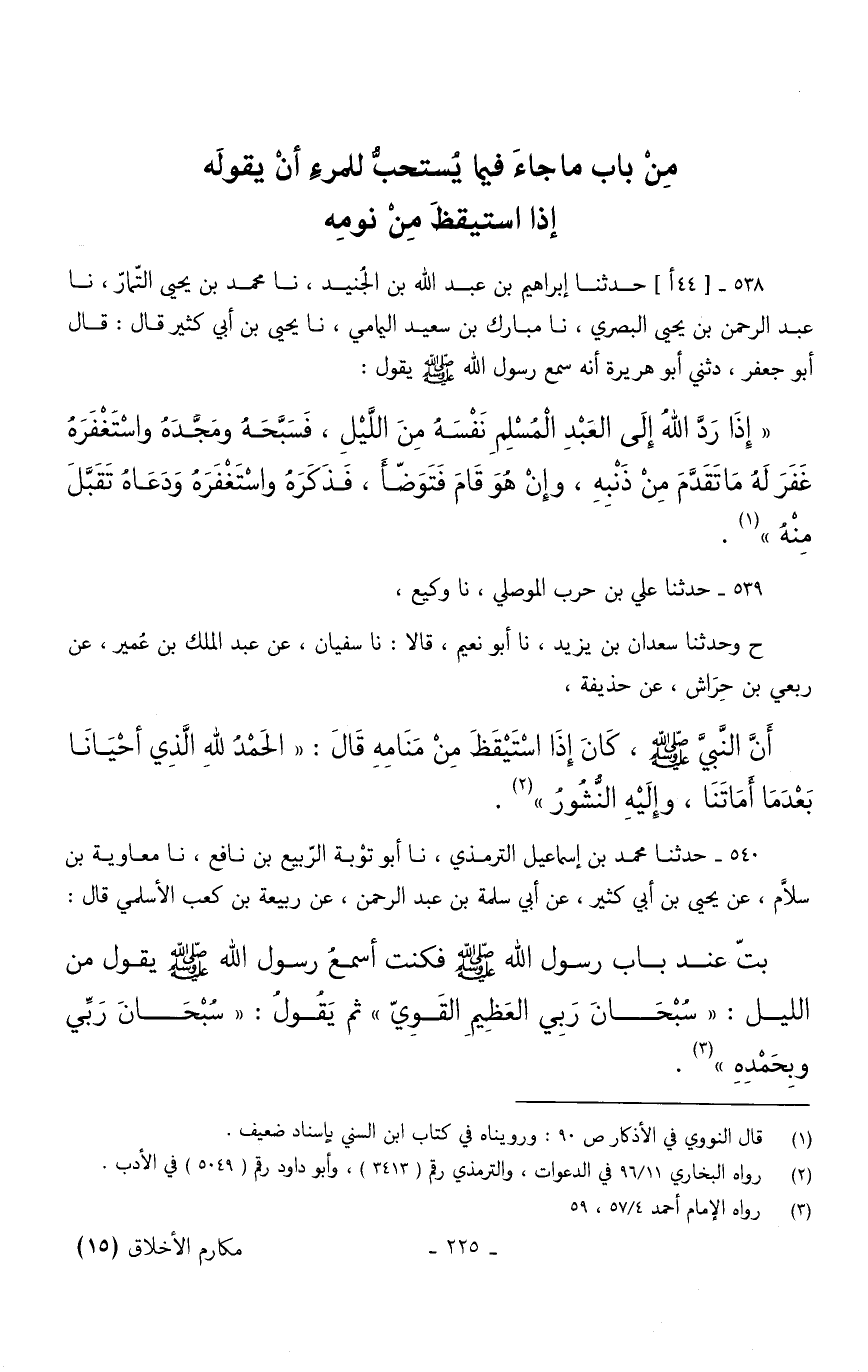 من بَاب مَا جَاءَ فِيمَا يسْتَحبّ للمرء أَن يَقُوله إِذا اسْتَيْقَظَ من نَومه