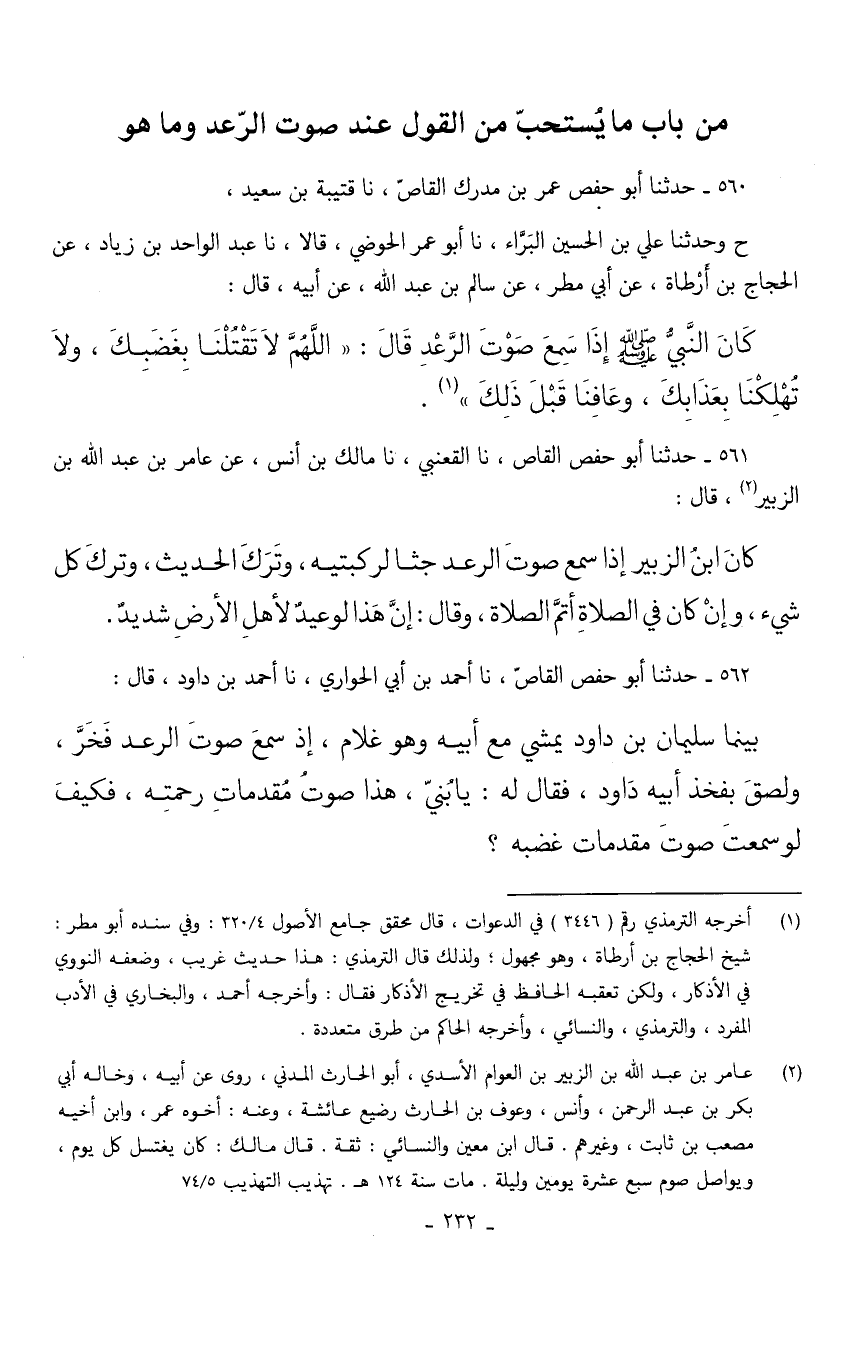 من بَابُ مَا يُسْتَحَبُّ مِنَ الْقَوْلِ عِنْدَ صَوْتِ الرَّعْد وَمَا هُوَ