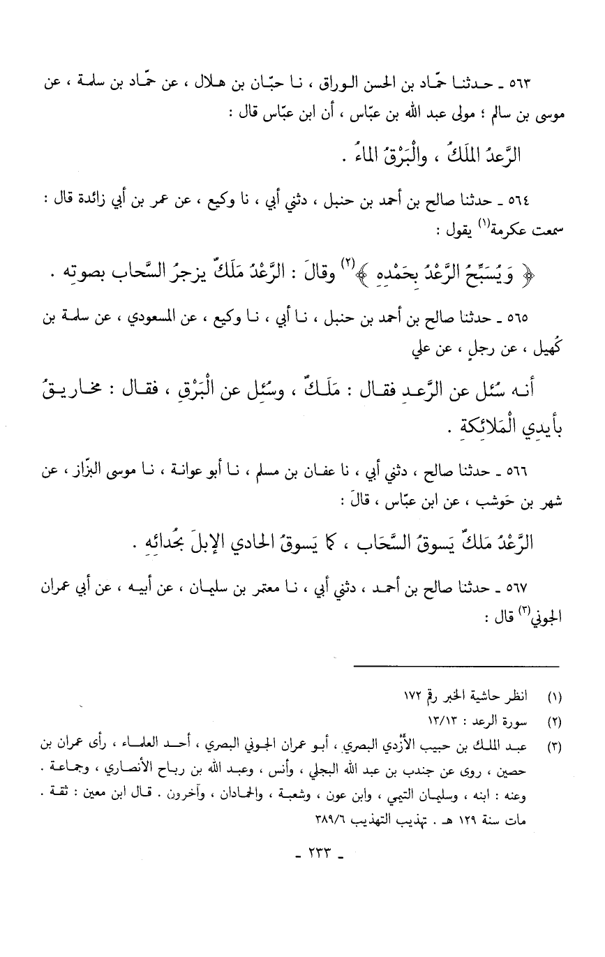 564 - حَدثنَا صَالح بن أَحْمد بن حَنْبَل دثني أبي نَا وَكِيعٌ عَنْ عُمَرَ بْنِ أَبِي زَائِدَةَ قَالَ سَمِعت عِكْرِمَة يَقُول