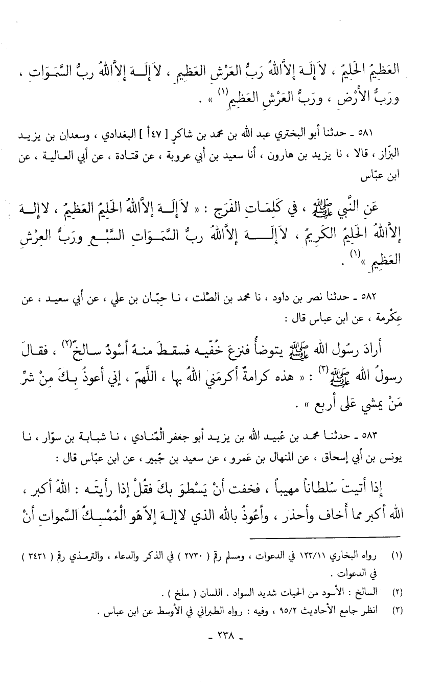 الْعَظِيم الْحَلِيمُ لَا إِلَهَ إِلَّا اللَّهُ رَبُّ الْعَرْشِ الْعَظِيمِ لَا إِلَهَ إِلَّا اللَّهُ رَبُّ السَّمَوَاتِ وَرَبُّ الْأَرْضِ وَرَبُّ الْعَرْشِ الْعَظِيمِ