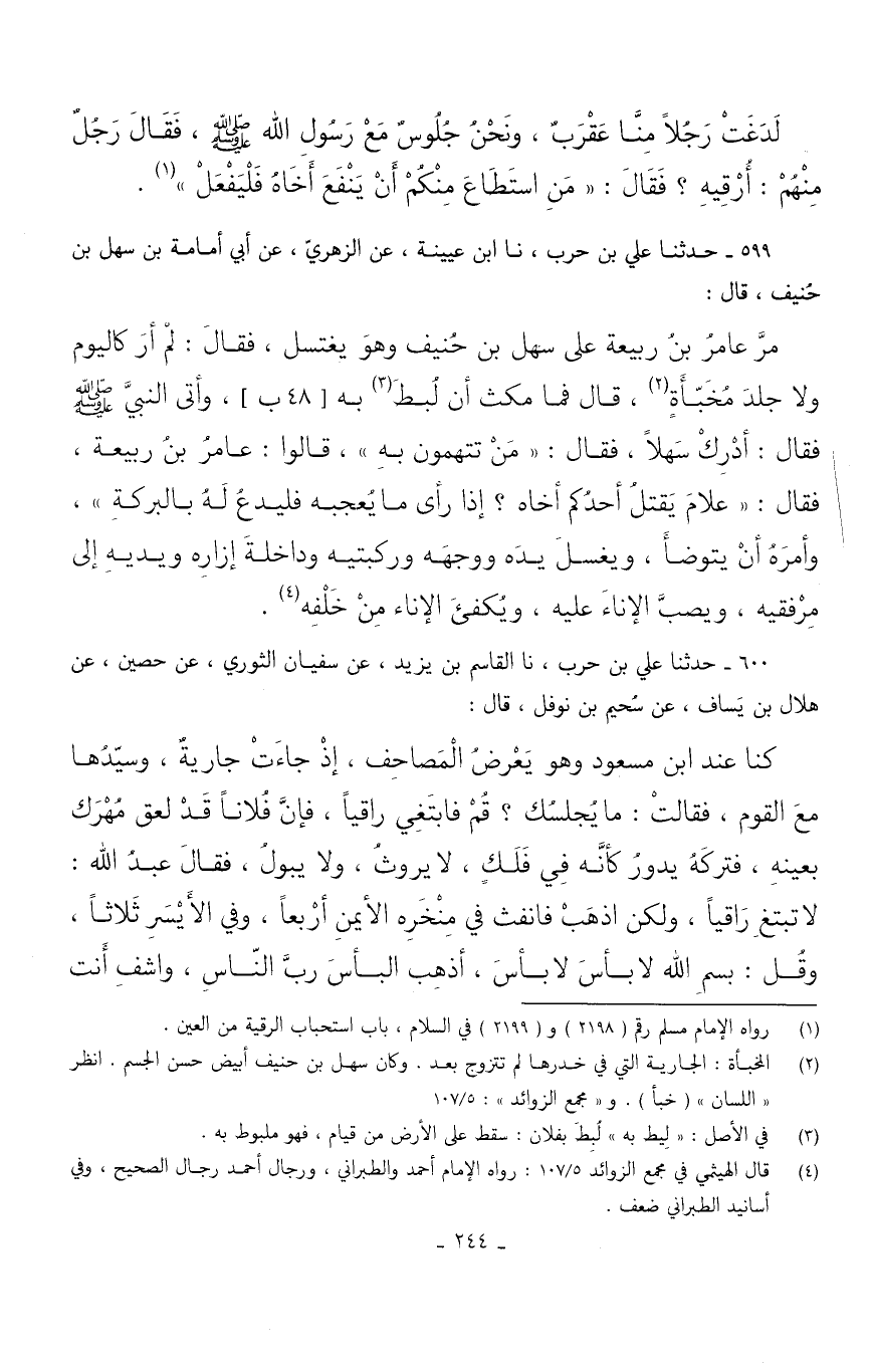 599 - حَدثنَا عَليّ بن حَرْب نَا ابْنُ عُيَيْنَةَ عَنِ الزُّهْرِيِّ عَنْ أَبِي أُمَامَةَ بْنِ سَهْلِ بْنِ حُنَيْفٍ قَالَ