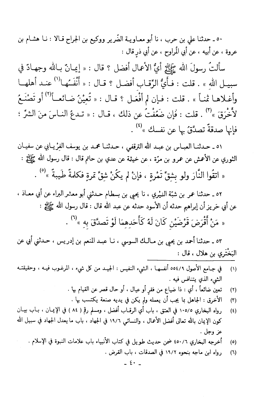 50 - حَدثنَا عَليّ بن حَرْب نَا أَبُو مُعَاوِيَةَ الضَّرِيرُ وَوَكِيعُ بْنُ الْجَرَّاحِ قَالَا نَا هِشَامُ بْنُ عُرْوَةَ عَنْ أَبِيهِ عَنْ أَبِي الْمُرَاوِحِ عَنْ أَبِي ذَرٍّ قَالَ