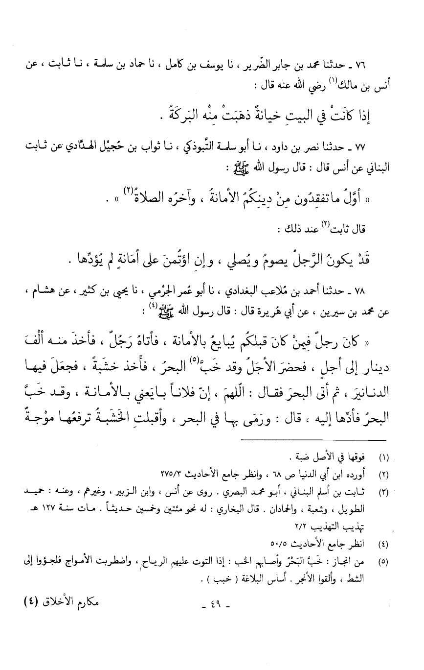 77 - حَدثنَا نصر بن دَاوُد نَا أَبُو سَلمَة التَّبُوذَكِي نَا ثَوَابُ بْنُ حُجَيْلٍ الْهَدَادِيُّ عَنْ ثَابِتٍ الْبُنَانِيِّ عَنْ أَنَسٍ قَالَ قَالَ رَسُولُ اللَّهِ صَلَّى اللَّهُ عَلَيْهِ وَسَلَّمَ