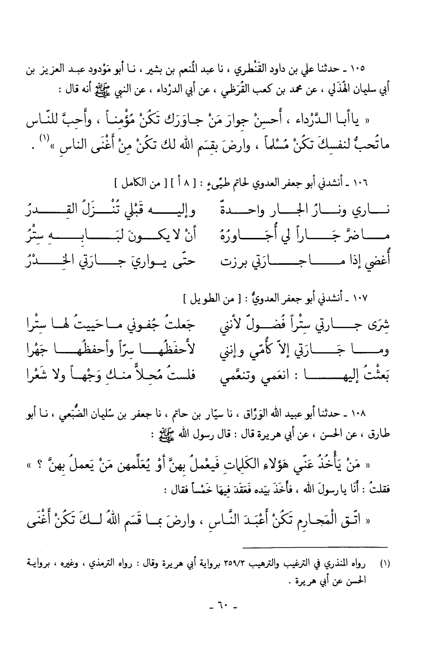 106 - أَنْشدني أَبُو جَعْفَر الْعَدوي لحاتم طَيئ من // الْكَامِل //