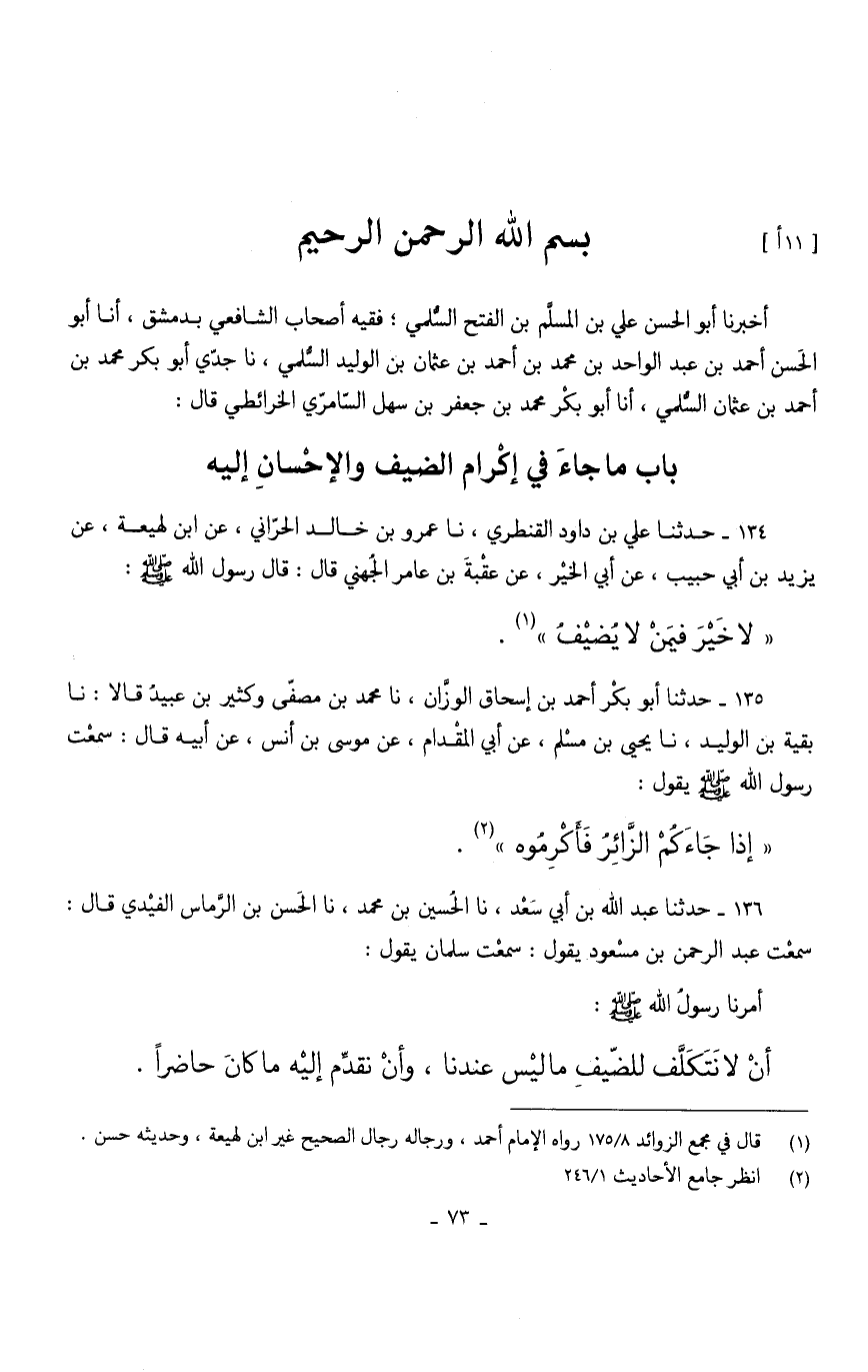 أَنْ لَا نَتَكَلَّفَ لِلضَّيْفِ مَا لَيْسَ عِنْدَنَا وَأَنْ نُقَدِّمَ إِلَيْهِ مَا كَانَ حَاضِرًا