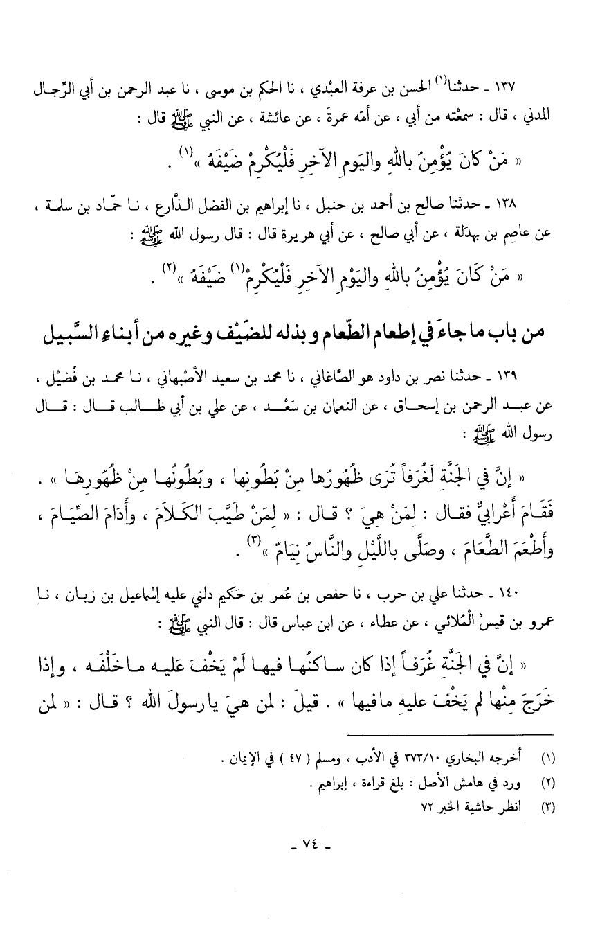 من بَابُ مَا جَاءَ فِي إِطْعَامِ الطَّعَامِ وَبَذْلِهِ لِلضَّيْفِ وَغَيْرِهِ مِنْ أَبْنَاءِ السَّبِيلِ