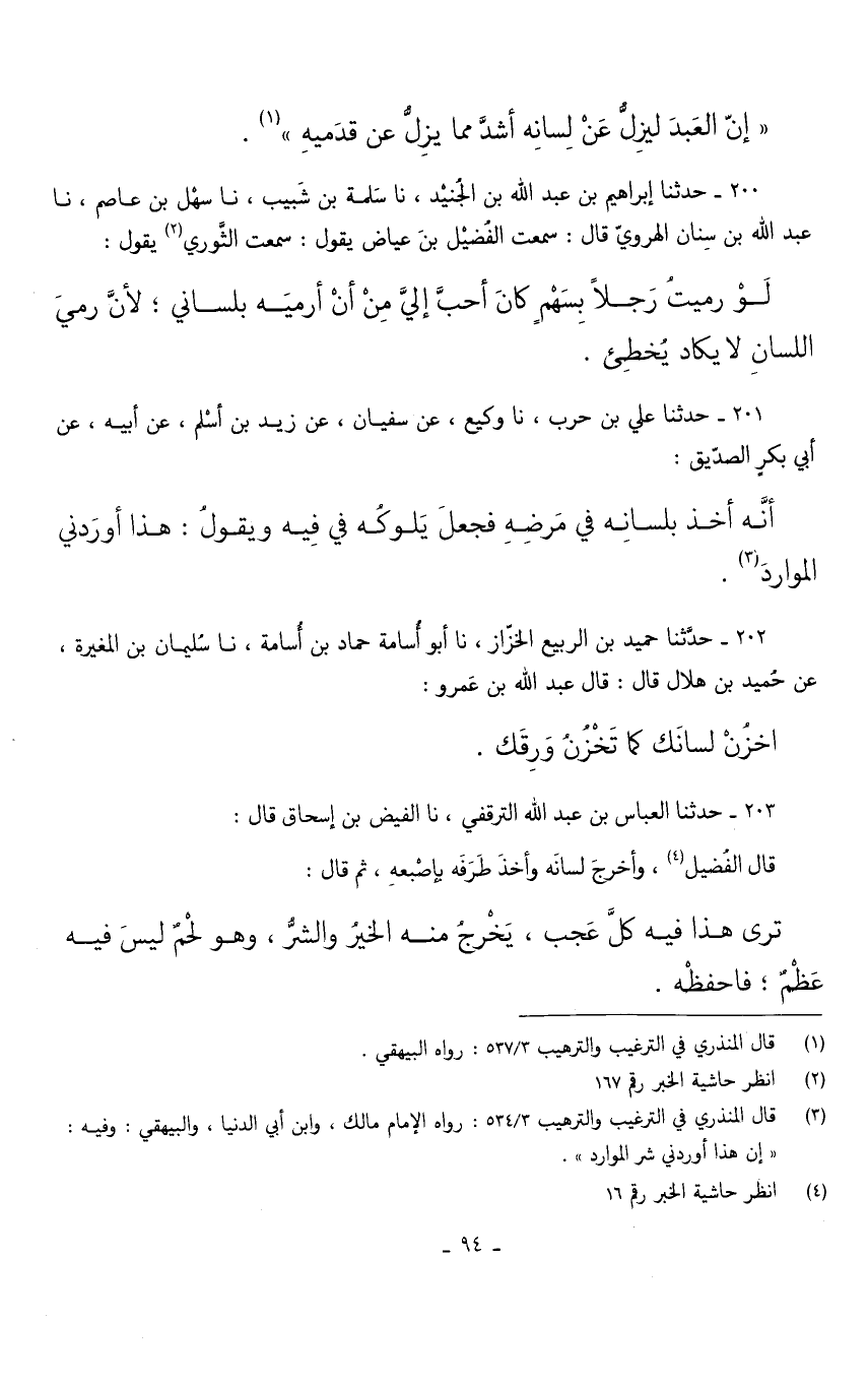 إِنَّ الْعَبْدَ لَيَزِلُّ عَنْ لِسَانِهِ أَشَدَّ مِمَّا يَزِلُّ عَنْ قَدَمَيْهِ